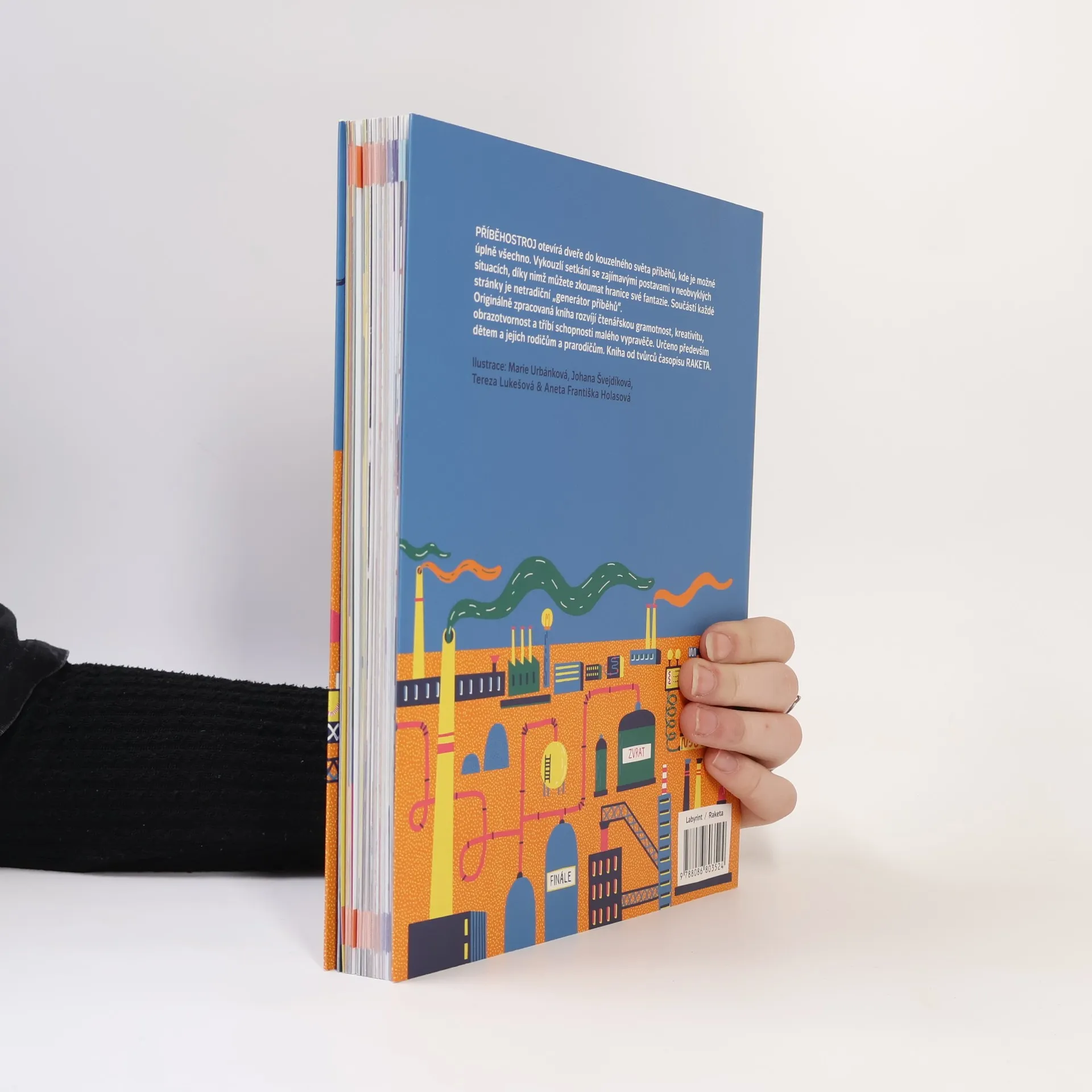 Příběhostroj dětem otevírá dveře do kouzelného světa příběhů, kde je možné úplně všechno. Vykouzlí setkání se zajímavými postavami v neobvyklých situacích, díky nimž mohou děti zkoumat hranice své fantazie. Součástí knihy je netradiční „generátor příběhů“ — během vyprávění se losují náhodné postavy, předměty či situace umístěné v rozích každé stránky. Originálně zpracovaná kniha rozvíjí čtenářskou gramotnost, kreativitu, obrazotvornost a tříbí schopnosti vypravěče. Bohatě ilustrované zábavné úkoly a hry jsou rozděleny do čtyř úrovní od začátečníka až po mistra Příběhostroje. Psát, lepit i kreslit do knihy je dovoleno. Určeno především malým čtenářům od 6 let do 12 let a jejich rodičům a prarodičům. Nová kniha od tvůrců časopisu RAKETA.