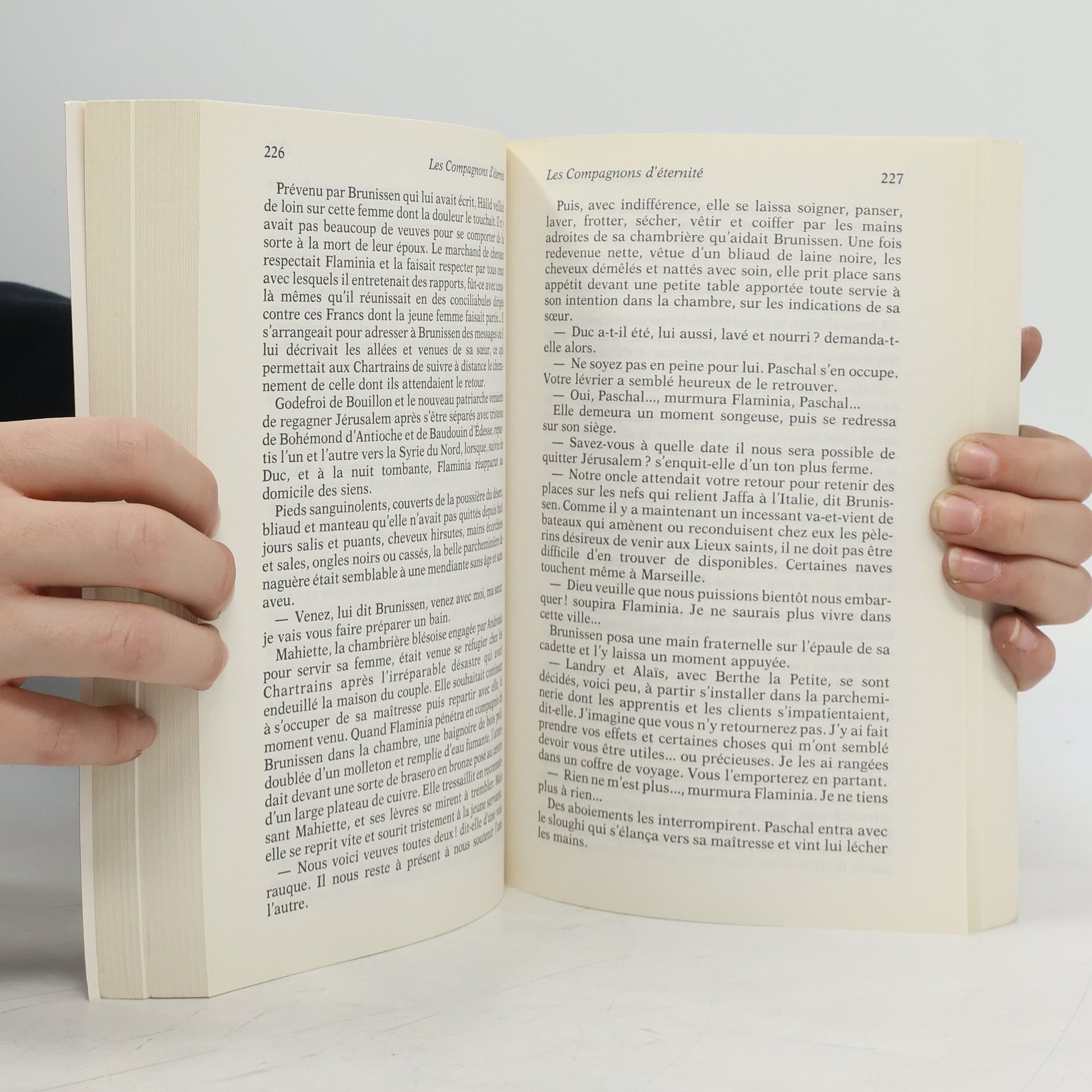 Juillet 1099 : les Francs s'emparent de Jérusalem qu'ils assiégeaient. Emportées par le vent de l'Histoire, Brunissen, Flaminia et Alaïs, les trois filles de Garin le parcheminier de Chartres, vont vivre dans leur coeur et dans leur chair l'affrontement de la Chrétienté et de l'Islam. Pendant que Godefroi de Bouillon fonde le royaume franc de Jérusalem, les trois soeurs, au fil des jours, traverseront heurs et malheurs en Terre sainte. A l'image du destin tourmenté du royaume naissant, leur sort sera semé de pièges. L'une songera à repartir pour Chartres, les autres à demeurer à Jérusalem.