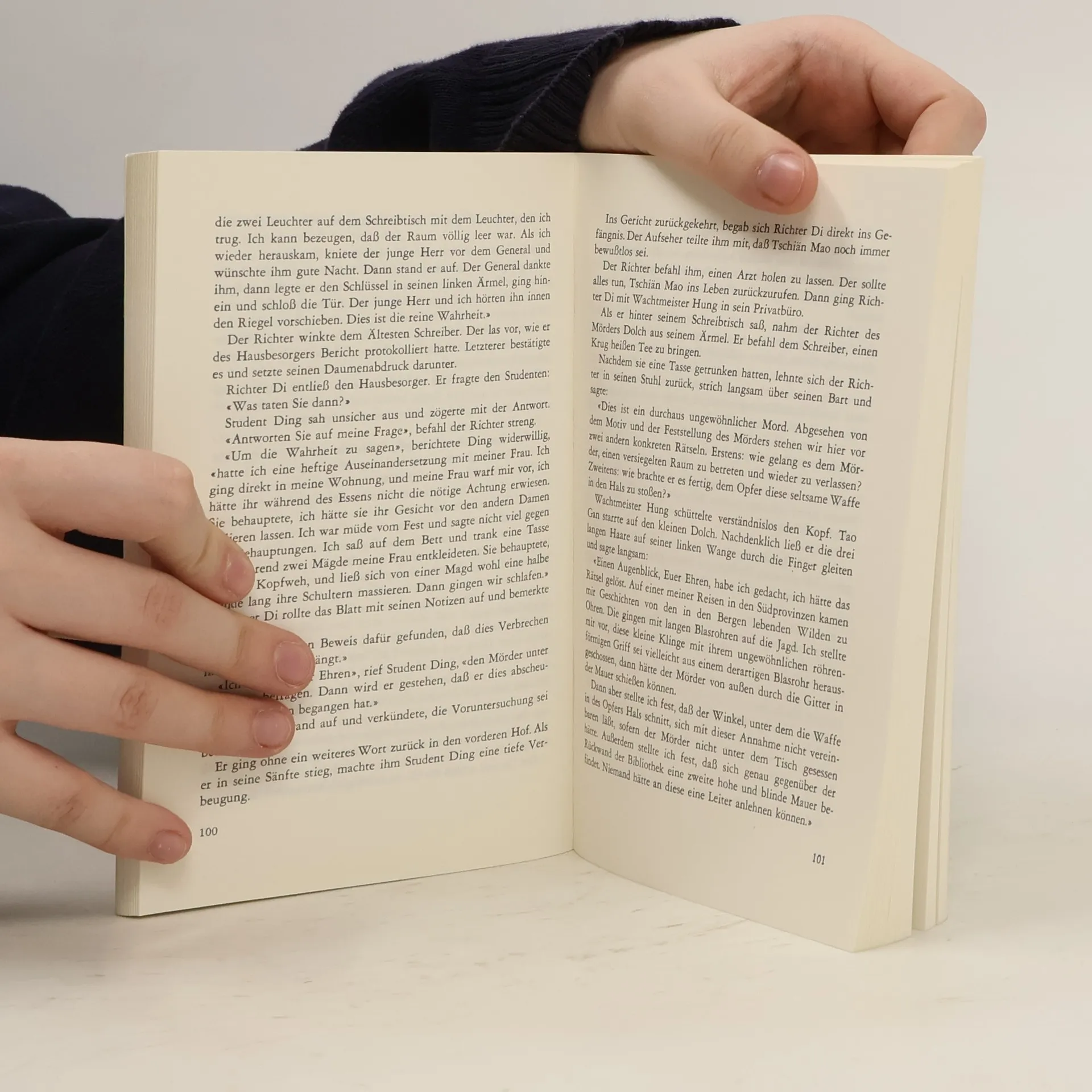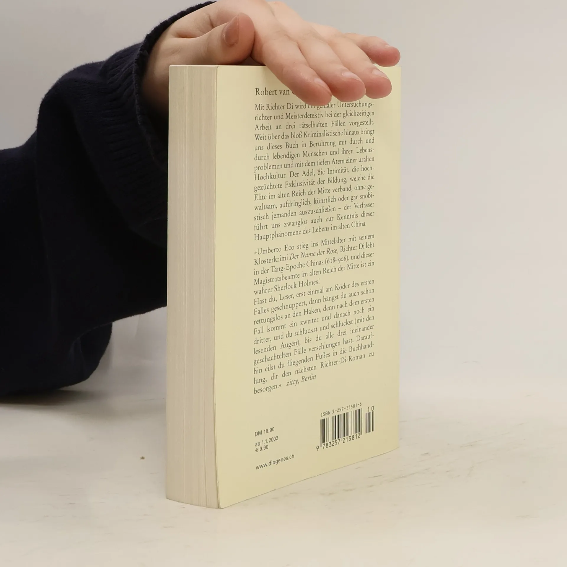 Richter Di, der geniale Untersuchungsrichter und Meisterdetektiv aus dem China des Mittelalters, muß auch in diesem Roman drei vertrackte Fälle gleichzeitig lösen. Dieses Mal wird Richter Di höchstpersönlich von zwei Räubern angegriffen und muß sich um ein versiegeltes Zimmer, ein verborgenes Testament und ein enthauptetes Mädchen kümmern.
