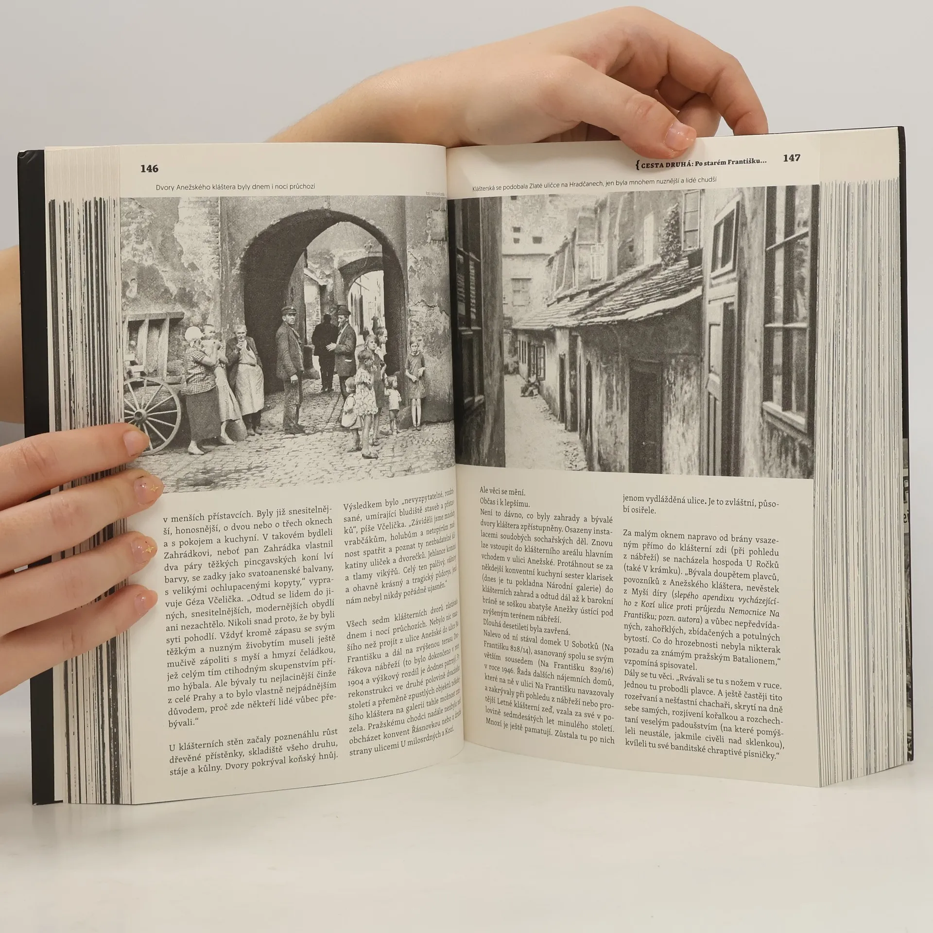 Knihu je možné číst a v duchu (dříve než se čtenář vydá na skutečnou cestu) vstupovat do labyrintu průchozích domů, dvorků a uliček Starého Města, včetně bývalého ghetta a čtvrti na Františku. Do míst, kde žili spisovatelé, malíři, zuřivé domovnice, nenapravitelní opilci (těch tu bylo vždycky dost) i lehké holky. Na Starém Městě žila rodina nejzářivější hvězdy poválečného Hollywoodu, krásná krasobruslařka i pětice bratrů různých osudů hodná Čapkovy Matky. Nejvtipnější český letec z RAF tu svedl svou poslední bitvu a popový idol devadesátých let hledal únik před sebou samým. Bydlel tu geniální kouzelník, nepolepšitelný bigamista a odvážný vzduchoplavec, průkopník emocionalismu (i explosionalismu) a kostelník, co choval na půdě v Železné ulici slepice a vyznamenala ho dánská královna. S touto knihou můžete kráčet do tajemné Řásnovky, na Kozí plácek, do Rybné, Masné, Štupartské a Týnské, kde pozorný chodec nalezne dosud nerozluštěný hebrejský nápis, do Michalské, Melantrichovy, Jilské a dál, až do Kožné, které zdejší kluci po generace říkali Ulička zpráv. Podél asanační spáry u kostela svatých Šimona a Judy, v níž se od nepaměti hrály vrácy nebo vracenky. Hra zvláštních pravidel, kterou jinde nenajdete. I takové je Staré Město.
