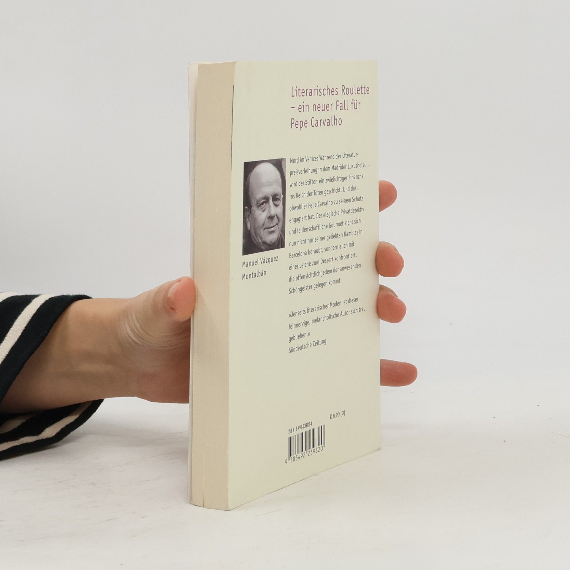 Mord im Venice: Während der Literaturpreisverleihung in dem Madrider Luxushotel wird der Stifter, ein zwielichtiger Finanzhai, ins Reich der Toten geschickt. Und das, obwohl er Pepe Carvalho zu seinem Schutz engagiert hat. Der elegische Privatdetektiv und leidenschaftliche Gourmet sieht sich nun nicht nur seiner geliebten Ramblas in Barcelona beraubt, sondern auch mit einer Leiche zum Dessert konfrontiert, die offensichtlich jedem der anwesenden Schöngeister gelegen kommt