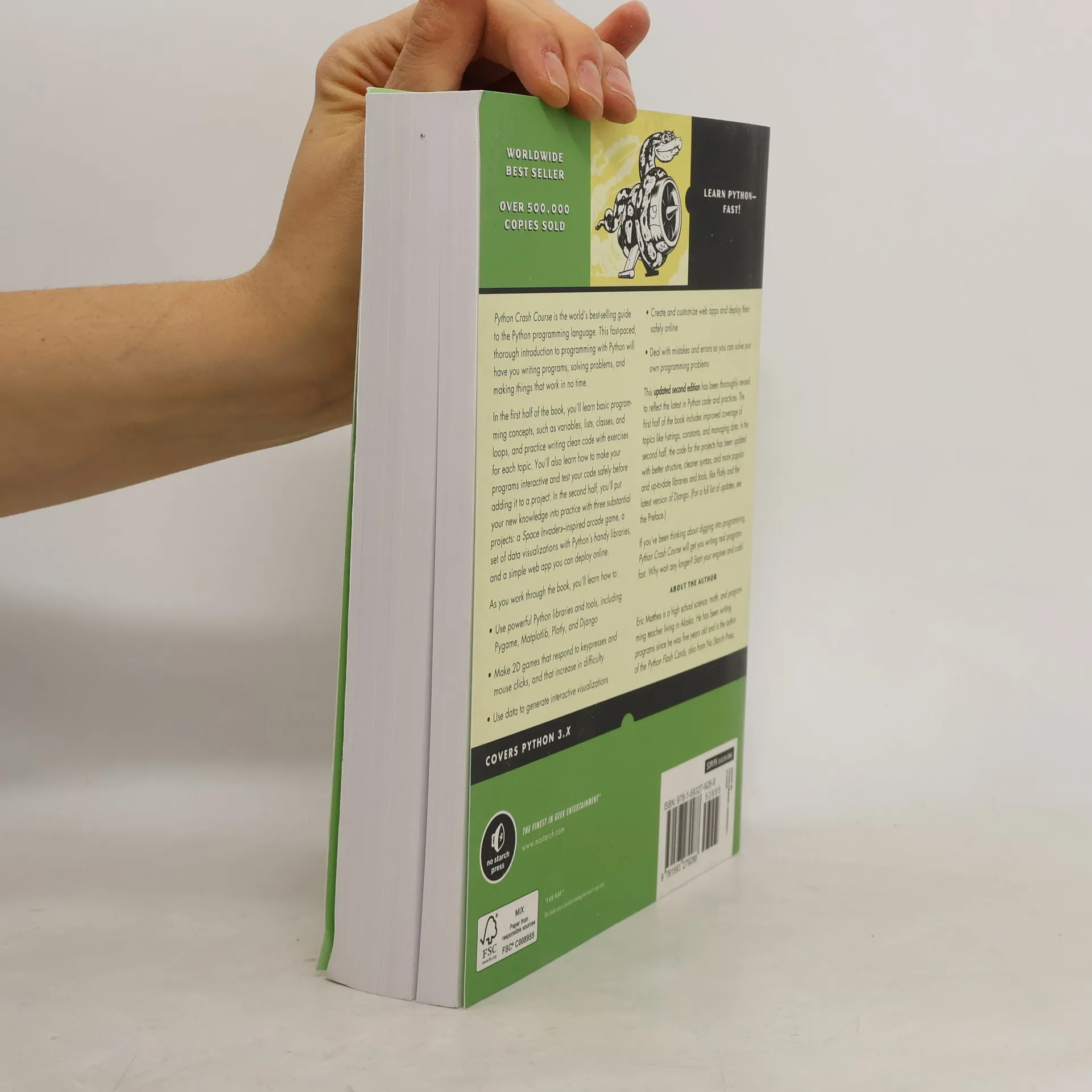 The best-selling Python book in the world, with over 1 million copies sold! A fast-paced, no-nonsense, updated guide to programming in Python. If you've been thinking about learning how to code or picking up Python, this internationally bestselling guide to the most popular programming language is your quickest, easiest way to get started and go! Even if you have no experience whatsoever, Python Crash Course, 2nd Edition, will have you writing programs, solving problems, building computer games, and creating data visualizations in no time. You’ll begin with basic concepts like variables, lists, classes, and loops—with the help of fun skill-strengthening exercises for every topic—then move on to making interactive programs and best practices for testing your code. Later chapters put your new knowledge into play with three cool projects: a 2D Space Invaders-style arcade game, a set of responsive data visualizations you’ll build with Python's handy libraries (Pygame, Matplotlib, Plotly, Django), and a customized web app you can deploy online. Why wait any longer? Start your engine and code!