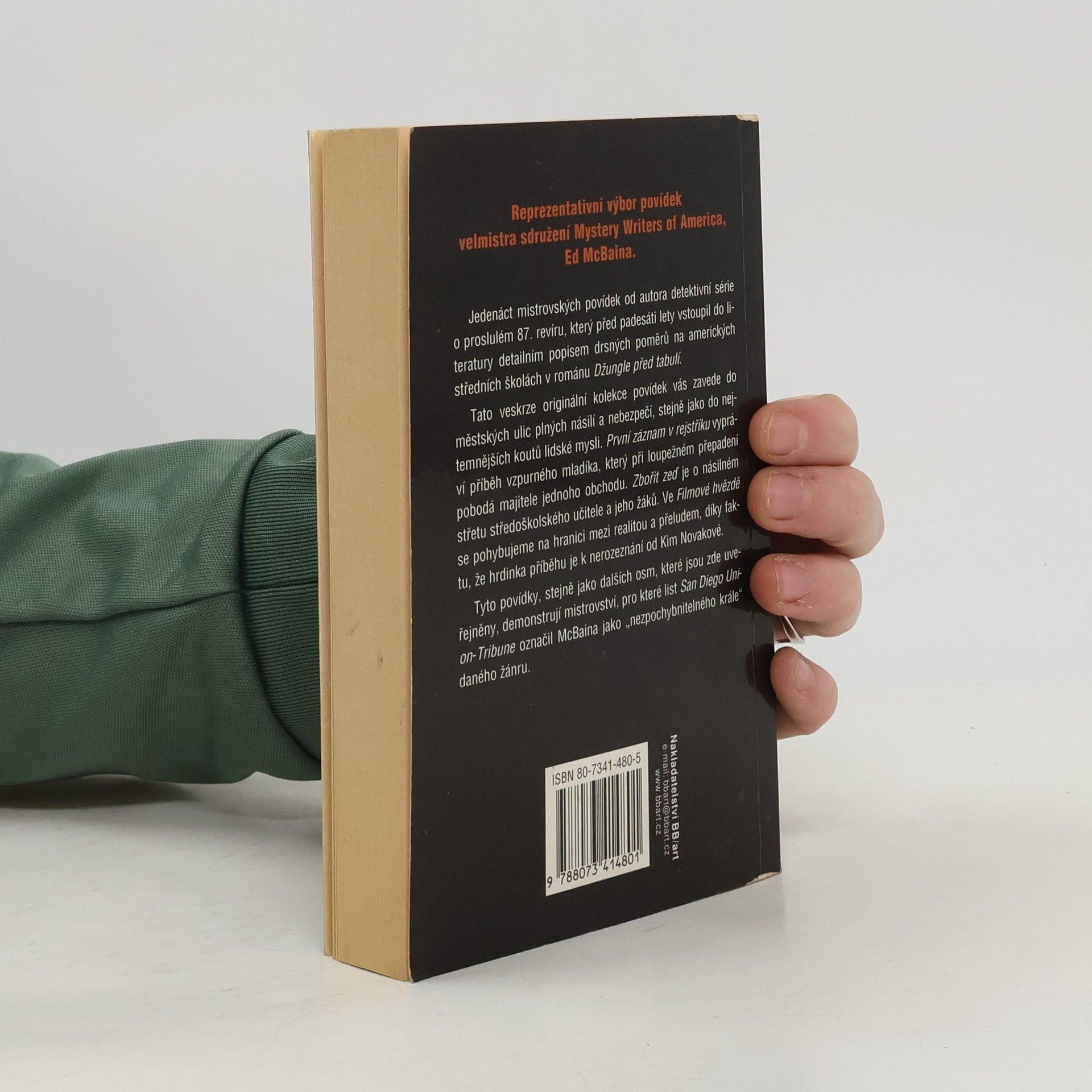 Tato veskrze originální kolekce povídek vás zavede do městských ulic plných násilí a nebezpečí, stejně jako do nejtemnějších koutů lidské mysli. „První záznam v rejstříku“ vypráví příběh vzpurného mladíka, který při loupežném přepadení pobodá majitele jednoho obchodu. „Zbořit zeď“ je o násilném střetu středoškolského učitele a jeho žáků. Ve „Filmové hvězdě“ se pohybujeme na hranici mezi realitou a přeludem, díky faktu, že hrdinka příběhu je k nerozeznání od Kim Novakové. Tyto povídky, stejně jako dalších osm, které jsou zde uveřejněny, demonstrují mistrovství, pro které list San Diego Union-Tribune označil McBaina jako „nezpochybnitelného krále“ daného žánru.