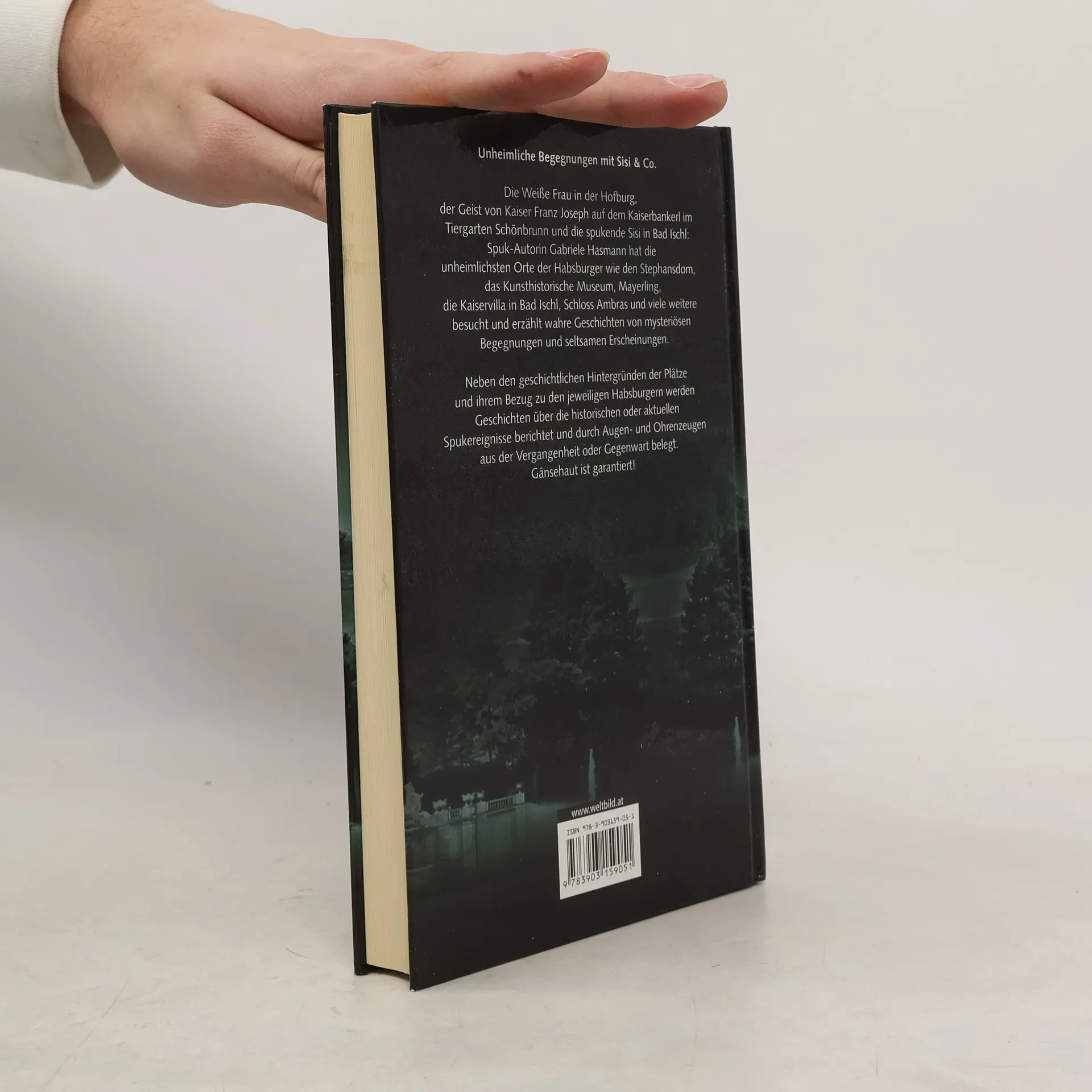 Die Weiße Frau in der Hofburg, der Geist von Kaiser Franz Joseph auf dem Kaiserbankl im Tiergarten Schönbrunn und die spukende Sisi in Bad Ischl: Die Spuk-Autorin Gabriele Hasmann hat die unheimlichsten Orte der Habsburger wie den Stephansdom, das Kunsthistorische Museum, Mayerling, die Kaiservilla in Bad Ischl, Schloss Ambras und viele weitere besucht und erzählt wahre Geschichten von mysteriösen Begegnungen. Neben den geschichtlichen Hintergründen der Plätze und ihren Bezug zu den jeweiligen Habsburgern werden Geschichten über die historischen oder aktuellen Spukereignisse berichtet und durch Augen- und Ohrenzeugen aus Vergangenheit oder Gegenwart belegt. Gänsehaut garantiert!