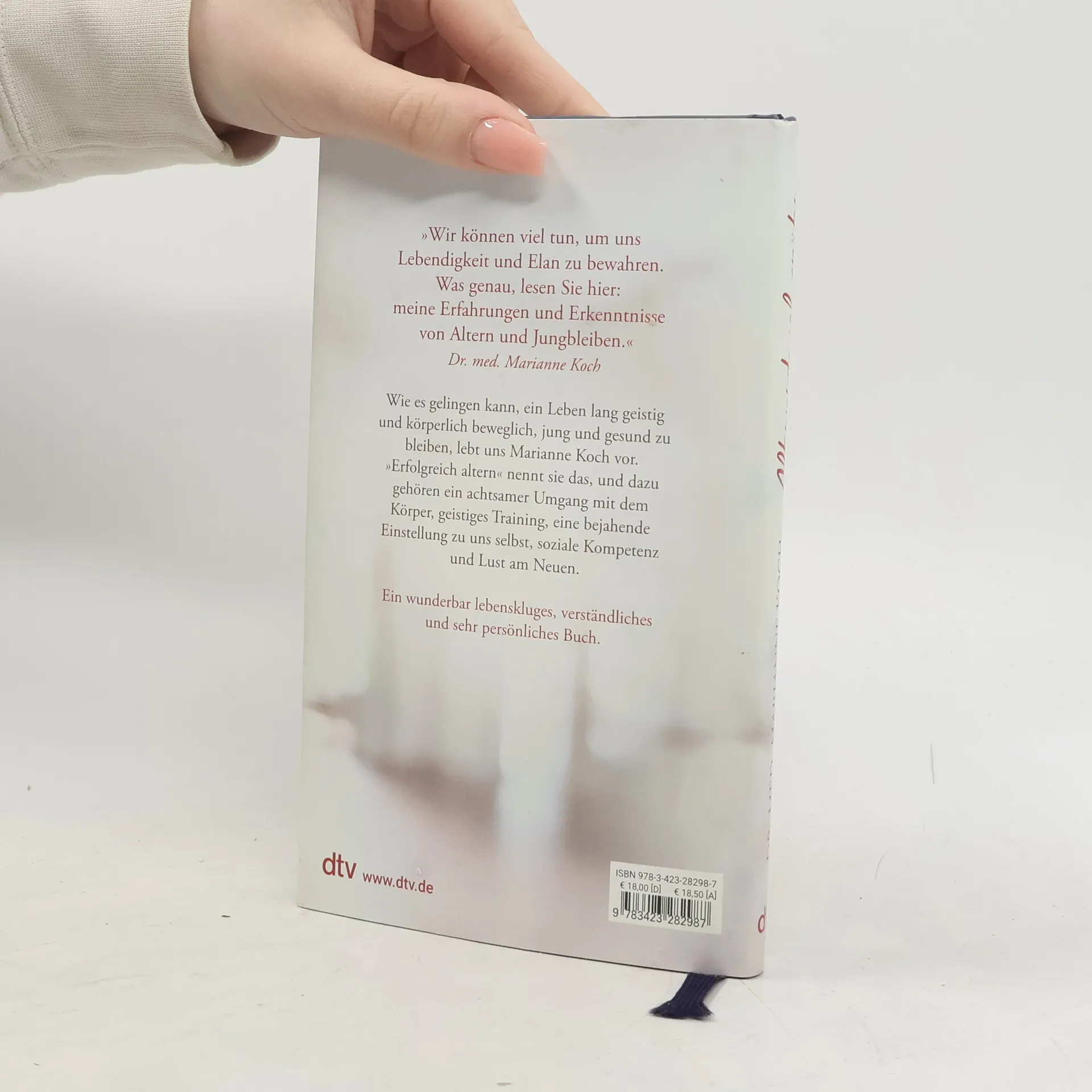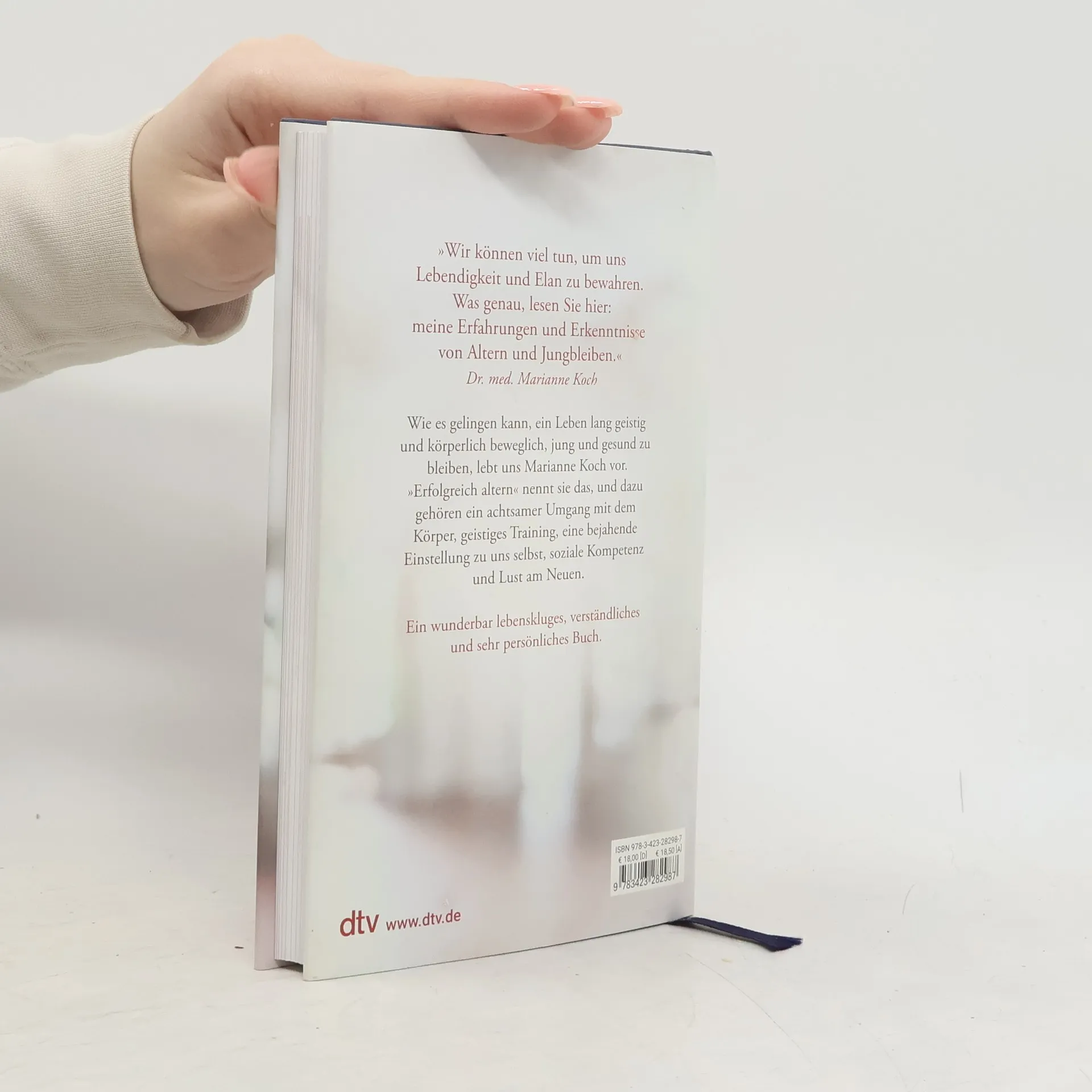 »Älter werden wir alle, auf das Wie kommt es an.« Wie es gelingt, geistig jung, gesund und voller Elan zu bleiben, lebt uns Dr. med. Marianne Koch vor. »Erfolgreich altern« nennt sie das, und was alles dazugehört, erzählt sie hier. In neun Kapiteln beleuchtet Marianne Koch physiologische wie psychische Aspekte, die das Altern mit sich bringt. Sie geht auf das Selbstbewusstsein ein, auf Ernährung und Bewegung, auf lebenslanges Lernen, das Problem der Einsamkeit, den Umgang mit Verlusten und zeigt, wie wichtig es ist, die Lust am Neuen nicht zu verlieren. Am Ende steht die Frage: Wer bin ich heute – und wer möchte ich morgen sein? Immer wieder schöpft Marianne Koch aus ihren eigenen Erfahrungen, sie erzählt, gibt Rat und wertvolle Empfehlungen.