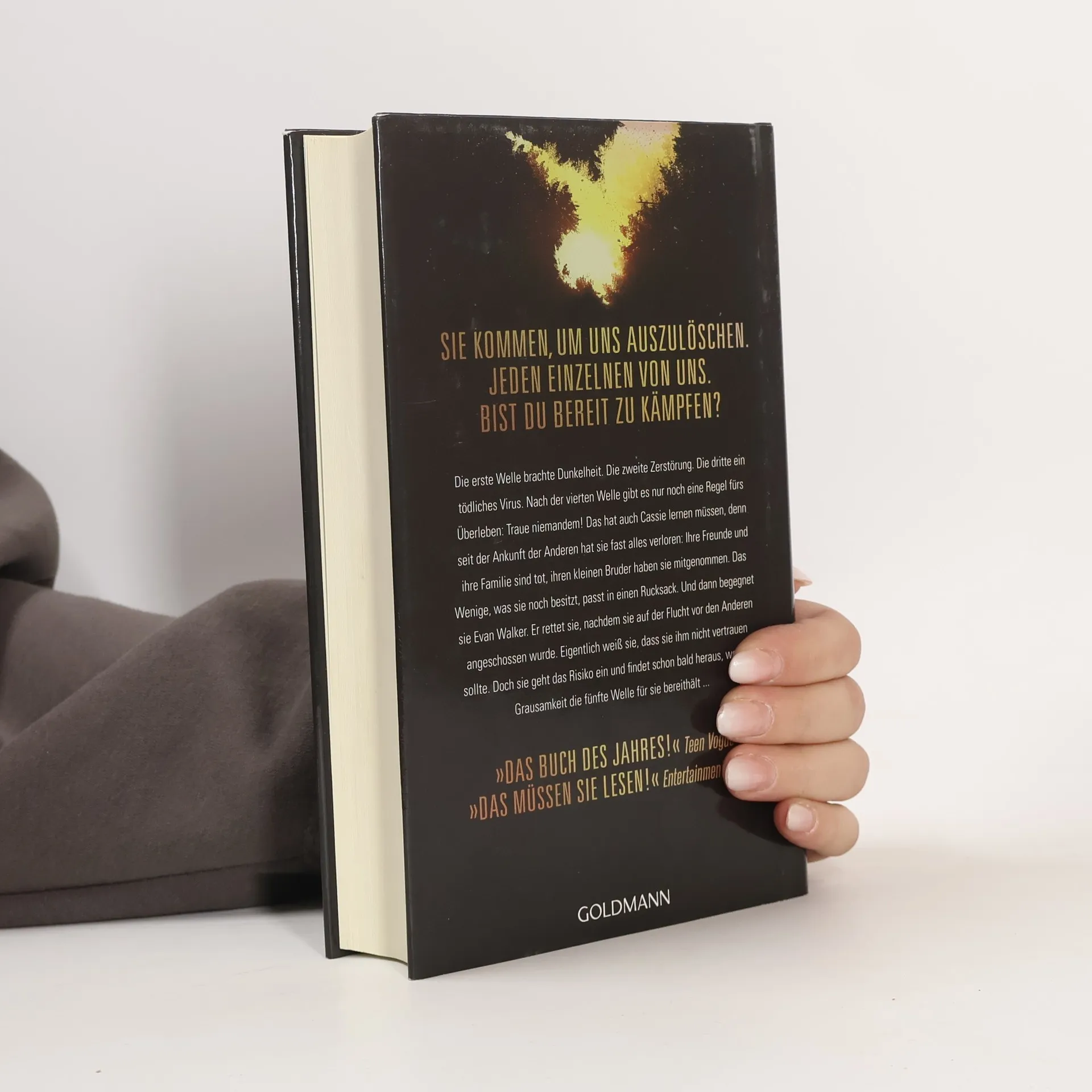 Die erste Welle brachte Dunkelheit. Die zweite Zerstörung. Die dritte ein tödliches Virus. nach der vierten Welle gibt es nur noch eine Regel fürs Überleben: Traue niemandem! Das hat auch Cassie lernen müssen, denn seit der Ankunft der Anderen hat sie fast alles verloren: Ihre Freunde und ihre Familie sind tot, ihren kleinen Bruder haben sie mitgenommen. Das Wenige, was sie noch besitzt, passt in einen Rucksack. Und dann begegnet sie Evan Walker. Er rettet sie, nachdem sie auf der Flucht vor den Anderen angeschossen wurde. Eigentlich weiß sie, dass sie ihm nicht vertrauen sollte. Doch sie geht das Risiko ein und findet schon bald heraus, welche Grausamkeit die fünfte Welle für sie bereithält ...