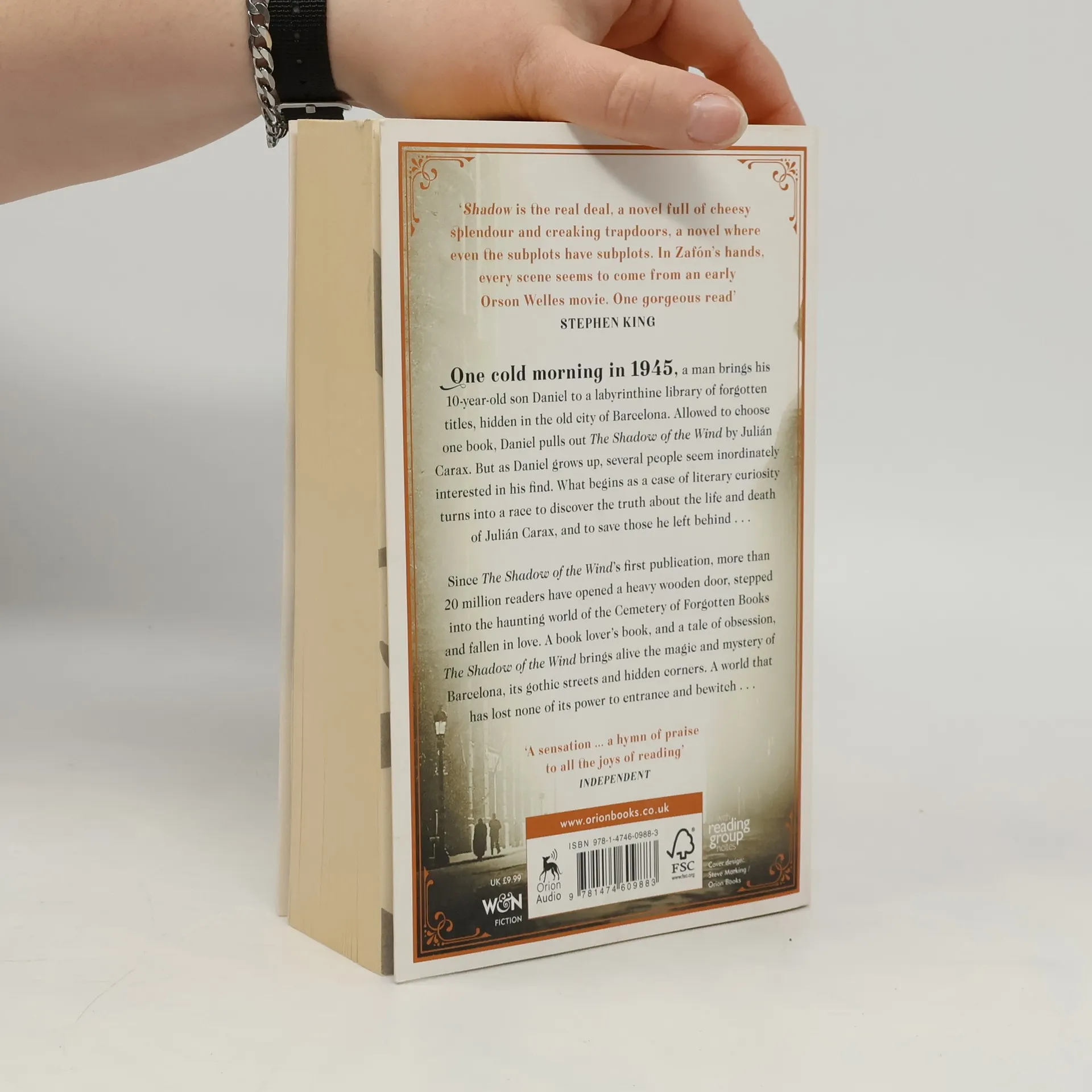 THE MODERN CLASSIC: OVER 20 MILLION COPIES SOLD A Sunday Times bestseller and a Richard & Judy book club pick 'The real deal: one gorgeous read' Stephen King 'This book will change your life. An instant classic' Daily Telegraph 'A book lover's dream' The Times Hidden in the heart of the old city of Barcelona is the 'Cemetery of Lost Books', a labyrinthine library of obscure and forgotten titles that have long gone out of print. To this library, a man brings his 10-year-old son Daniel one cold morning in 1945. Daniel is allowed to choose one book from the shelves and pulls out 'The Shadow of the Wind' by Julian Carax. But as he grows up, several people seem inordinately interested in his find. Then, one night, as he is wandering the old streets once more, Daniel is approached by a figure who reminds him of a character from the book, a character who turns out to be the devil. This man is tracking down every last copy of Carax's work in order to burn them. What begins as a case of literary curiosity turns into a race to find out the truth behind the life and death of Julian Carax and to save those he left behind... 'Marvellous' Sunday Times 'A hymn of praise to all the joys of reading' Independent 'Gripping and instantly atmospheric' Mail on Sunday 'Irresistibly readable' Guardian 'Diabolically good' Elle