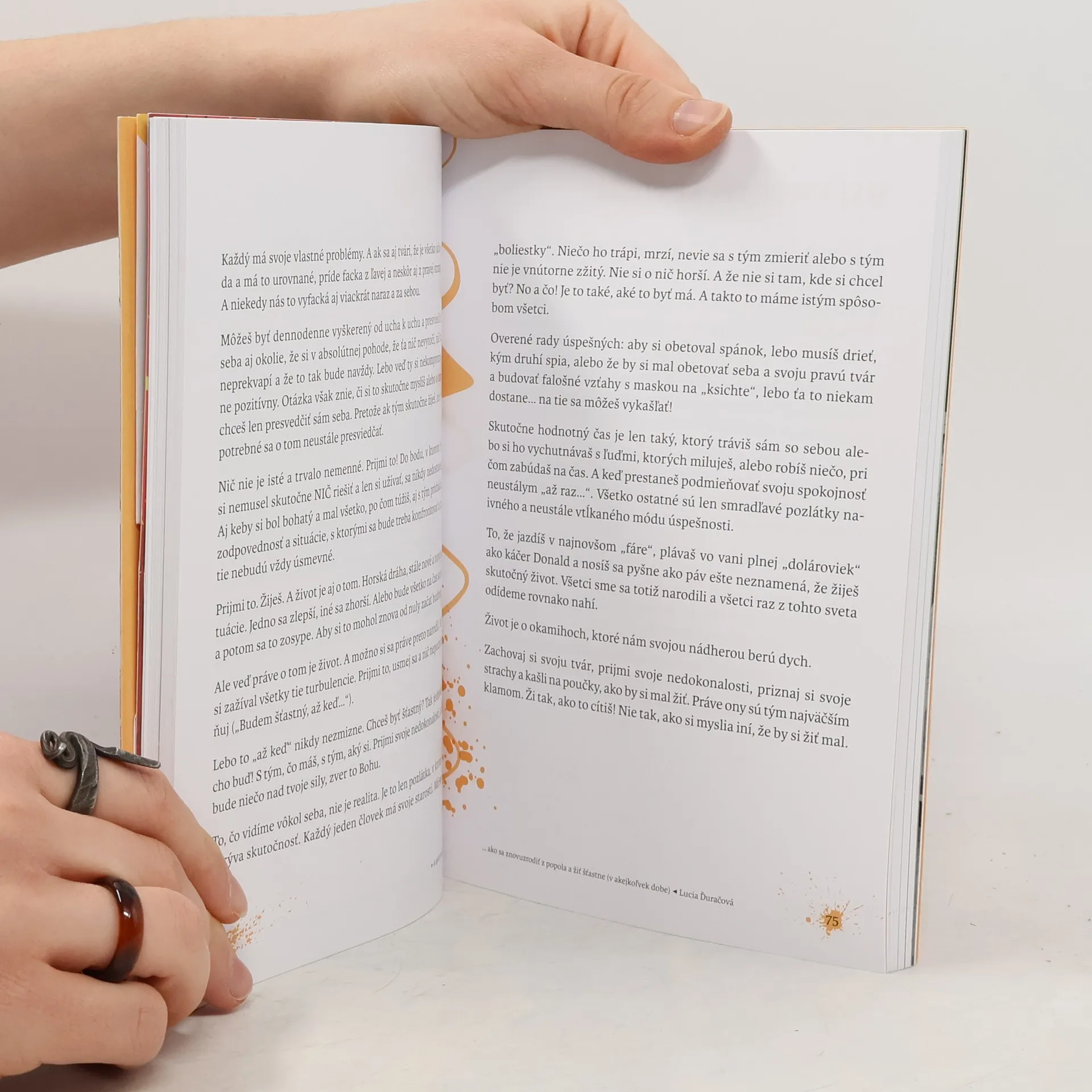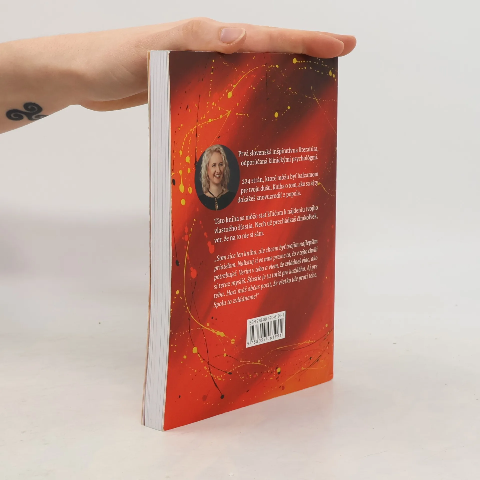 Prvá slovenská inšpiratívna literatúra, odporúčaná klinickými psychológmi, sa zaoberá témou osobného rastu a uzdravovania. Každý z nás sa niekedy ocitol na dne, a táto kniha sa dotýka našich spoločných túžob po šťastí. Počas čítania pocítiš, ako by si ju napísal sám, pretože krátke kapitoly sú písané srdcom a reflektujú rôzne oblasti tvojho života. Nie je to kniha o autorke, ale o tebe a tvojich emóciách. Kniha sa vyhýba motivačným klišé a ponúka úprimnosť a priamočiarosť, čo potvrdzujú aj odborníci. Obsahuje aj špeciálne maľby so silnou symbolikou, ktoré ti pomôžu precítiť prítomný okamih. Na 224 stranách nájdeš skrytý odkaz a referencie odborníkov, ktorí považujú knihu za terapeutický prostriedok. Získaš uvedomenie, že nie si sám vo svojich pocitoch, a podporu 24/7. Kniha sa môže stať balzamom pre tvoju dušu a kľúčom k nájdeniu šťastia, ukazujúc, ako sa môžeš znovuzrodiť z popola.