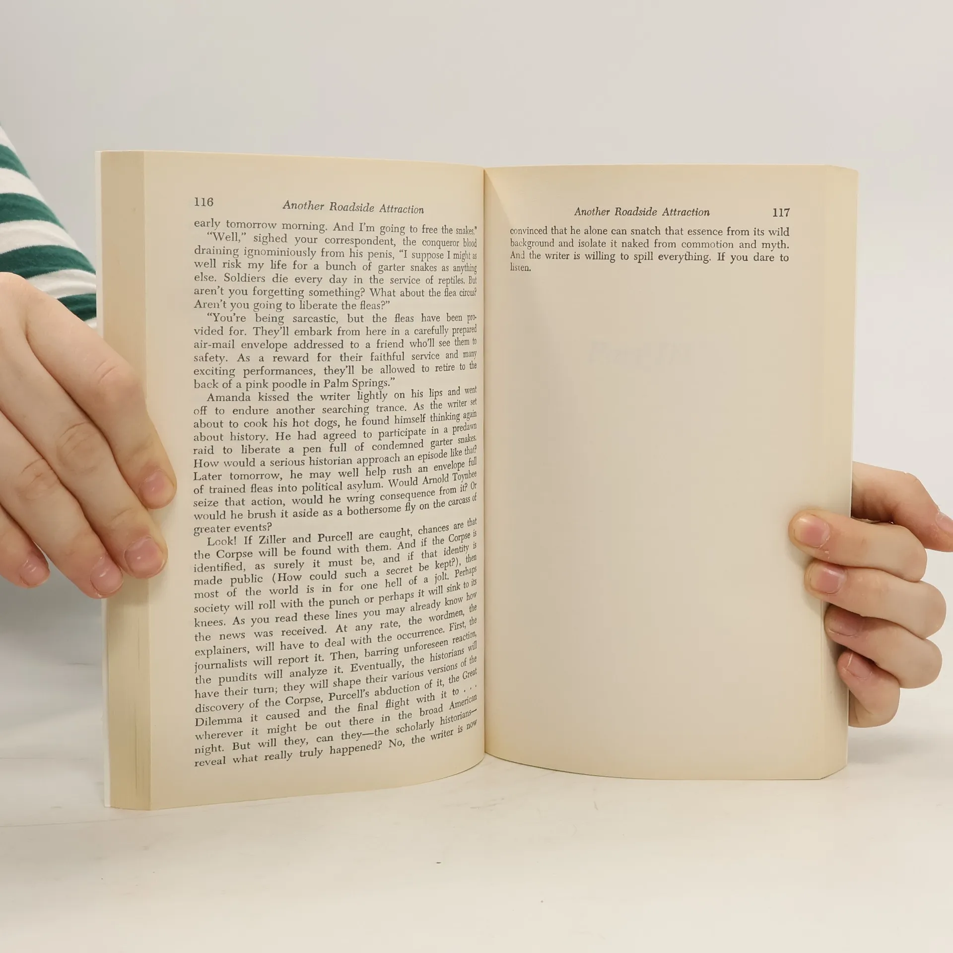 What if the Second Coming didn't quite come off as advertised? What if the Corpse on display in that funky roadside zoo is really who they say it is-- what does that portent for the future of western civilization? And what if a young clairvoyant named Amanda reestablishes the flea circus as popular entertainment and fertility worship as the principal religious form of our high-tech age? Another Roadside Attraction answers those questions and a lot more. It tells us, for example, what the sixties were truly all about, not by reporting on the psychedelic decade but by recreating it, from the inside out. In the process, this stunningly original seriocomic thriller eating a literary hotdog and eroding the borders of the mind.Written with a style and humor that haven't been seen since Mark Twain . . . it is a prize.-- Los Angeles Times.
