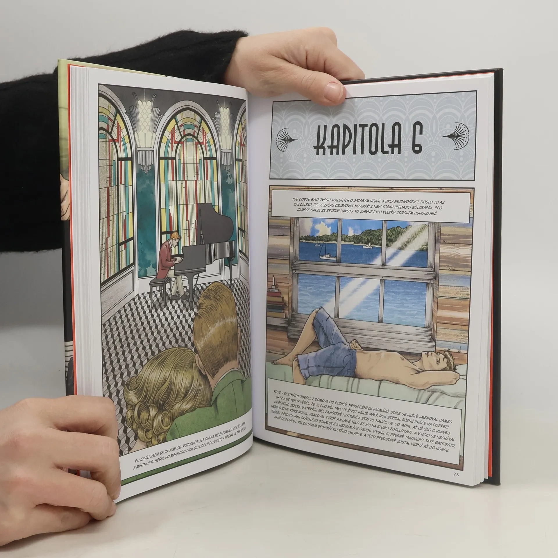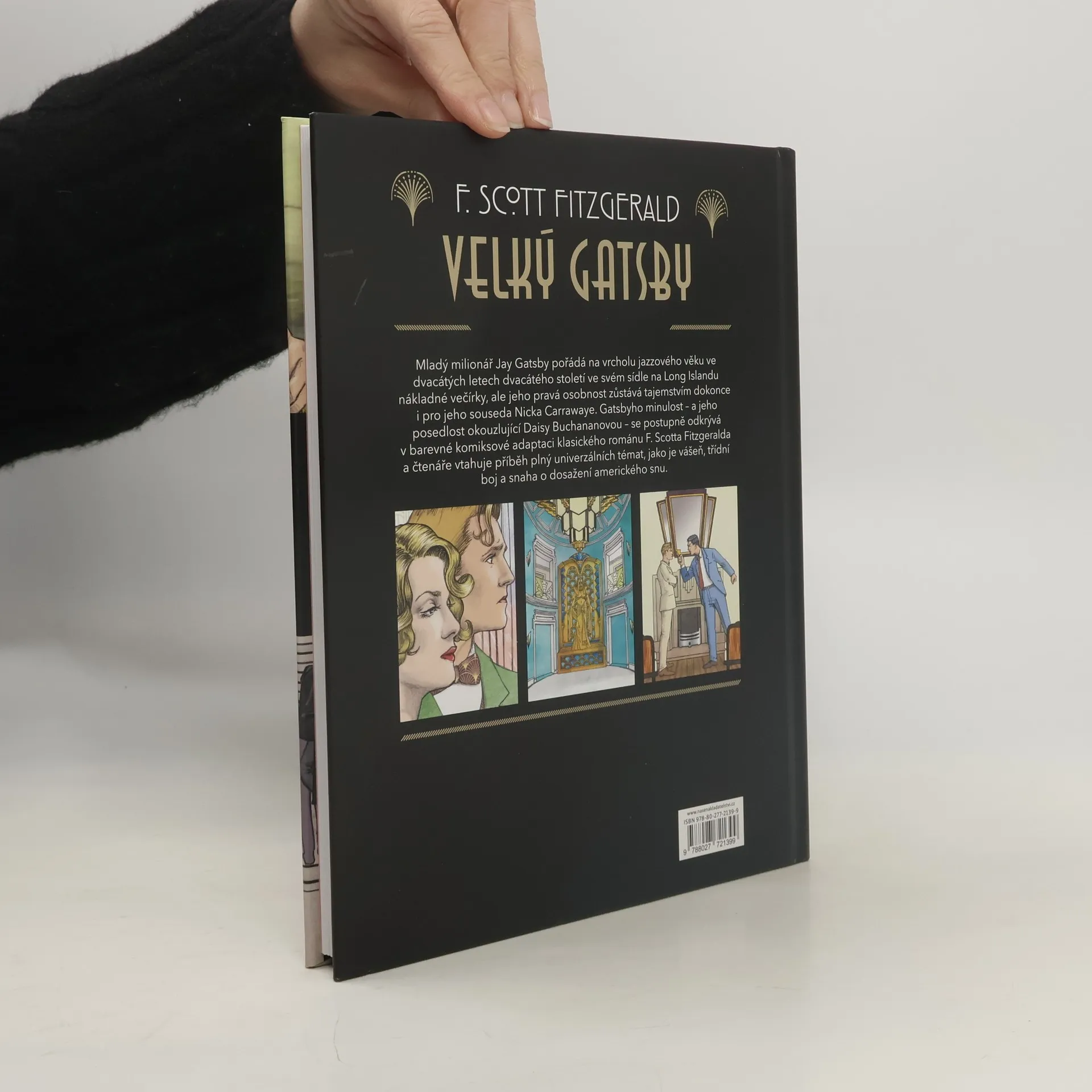 Mladý milionář Jay Gatsby pořádá na vrcholu jazzového věku ve dvacátých letech dvacátého století ve svém sídle na Long Islandu nákladné večírky, ale jeho pravá osobnost zůstává tajemstvím dokonce i pro jeho souseda Nicka Carrawaye. Gatsbyho minulost - se postupně odkrývá v barevné komiksové adaptaci klasického románu F. Scotta Fitzgeralda a čtenáře vtahuje příběh plný univerzálních témat, jako je vášeň, třídní boj a snaha o dosažení amerického snu.