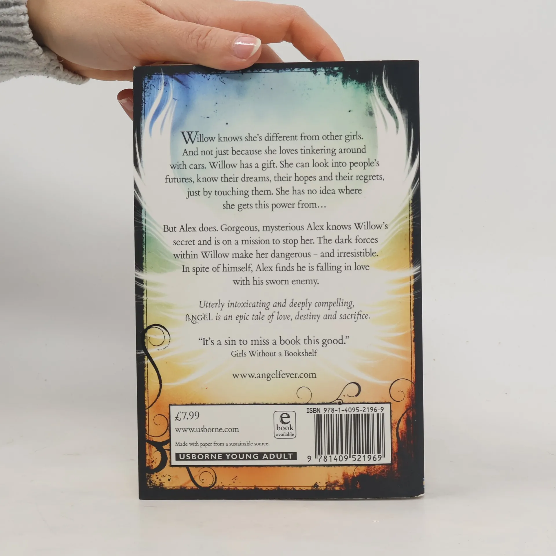 Angels are all around us: beautiful, awe-inspiring, irresistible.Ordinary mortals yearn to catch a glimpse of one of these stunning beings and thousands flock to The Church of Angels to feel their healing touch.But what if their potent magnetism isn't what it seems?Willow knows she's different from other girls. And not just because she loves tinkering around with cars.Willow has a gift. She can look into people's futures, know their dreams, their hopes and their regrets, just by touching them. But she has no idea where she gets this power from.Until she meets Alex…Alex is one of the few who know the truth about angels. He knows Willow's secret and is on a mission to stop her.The dark forces within Willow make her dangerous – and irresistible.In spite of himself, Alex finds he is falling in love with his sworn enemy.
