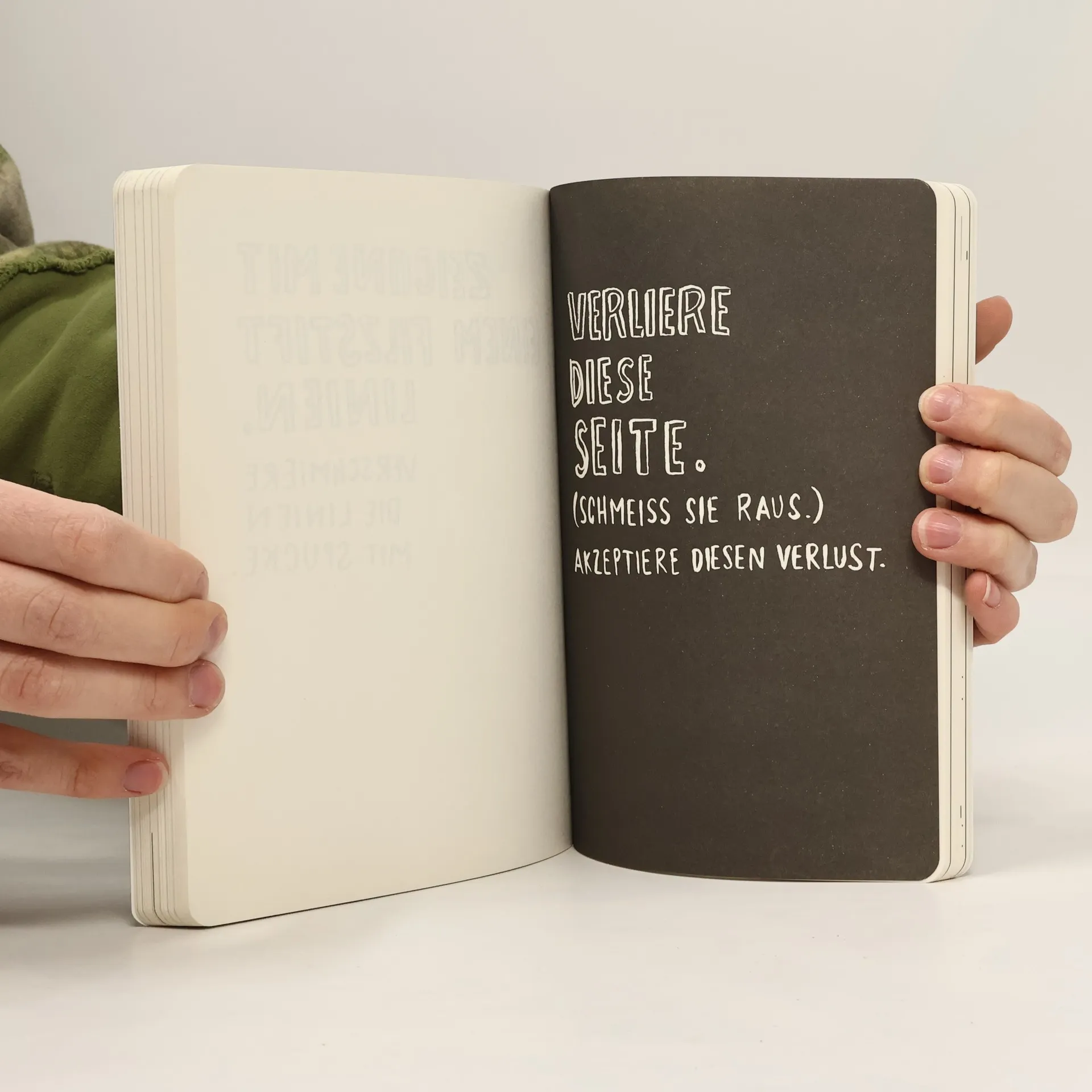 Nichts reinkritzeln. Keine Knicke machen. Nichts draufkleckern. Und bloß nicht im Regen liegen lassen. Wir haben es alle von klein auf gelernt: Bücher muss man gut behandeln. Dass es aber unheimlich Spaß macht, genau das nicht zu tun, zeigt dieses ideensprühende Buch: Bohre mit einem Bleistift Löcher in diese Seite. Dokumentiere dein Abendessen. Nimm das Buch mit unter die Dusche. Archiviere hier die Briefmarken all deiner Post. Schreibe mit dem Stift im Mund. Tobe dich auf dieser Seite aus, wenn du richtig sauer bist. Jede Seite dieses Buches wirkt wie ein Befreiungsschlag und setzt ungeahnte kreative Energien frei. Schaffen ist zerstören, sagt Keri Smith. Das Umgekehrte ist allerdings genauso richtig. Denn während man das Buch rundum fertig macht, entsteht ein witziges, spannendes und sehr individuelles Kunstwerk. Lass dich davon inspirieren und dann: Mach dein Buch fertig! JETZT AUCH ERHÄLTLICH: Die erweiterte Ausgabe mit drei neuen Covern - in limitierten Auflagen und nur für kurze Zeit!