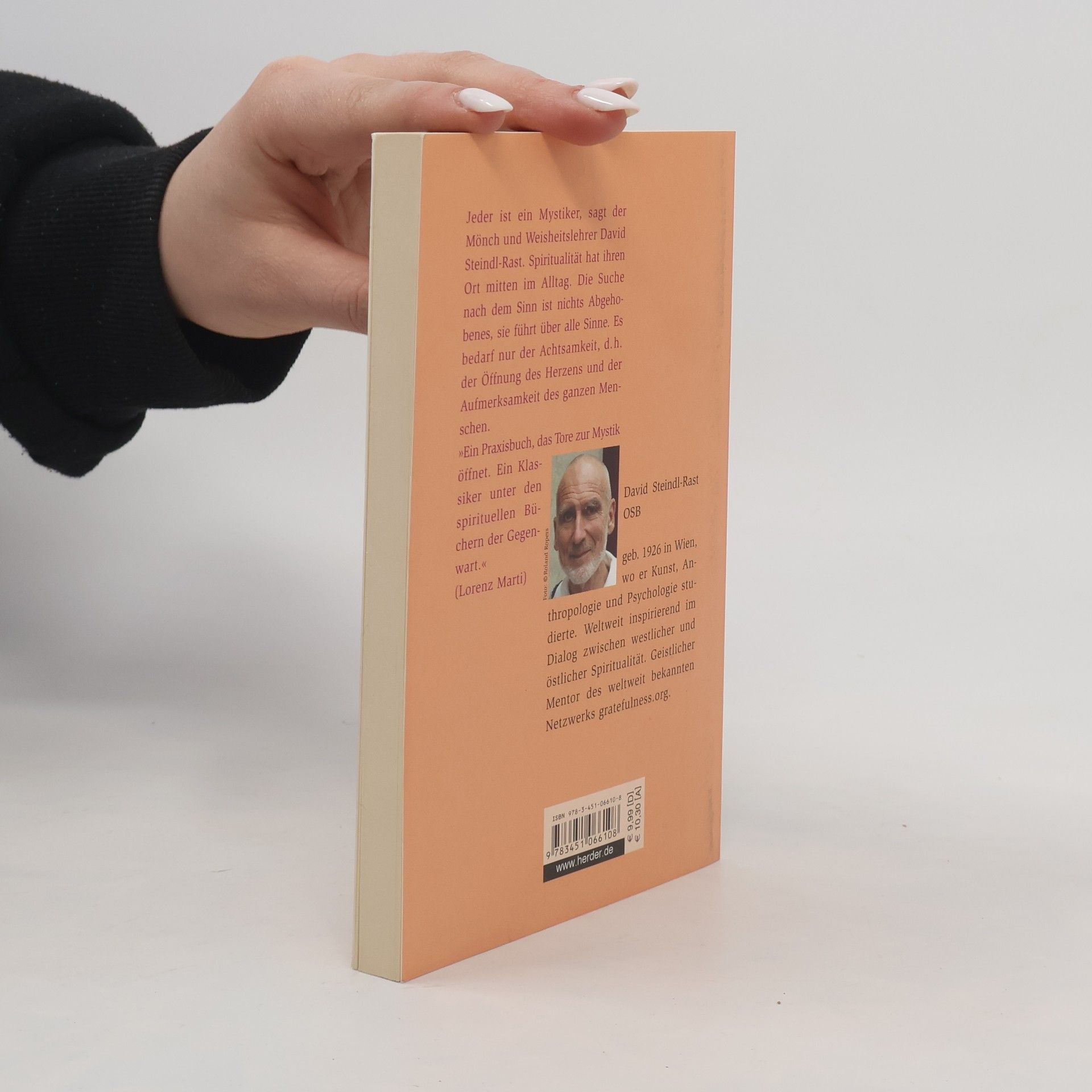 Jeder ist ein Mystiker, sagt Steindl-Rast. Und: Spiritualität hat ihren Ort mitten im Alltag. Die Suche nach dem Sinn führt über alle Sinne. Ein faszinierendes Meditationsbuch für den Weg des Herzens: Über die zentralen Themen Einsamkeit, Stille, Sammlung, Staunen, Freude und Dankbarkeit. „Ein Praxisbuch, das Tore zur Mystik öffnet.“