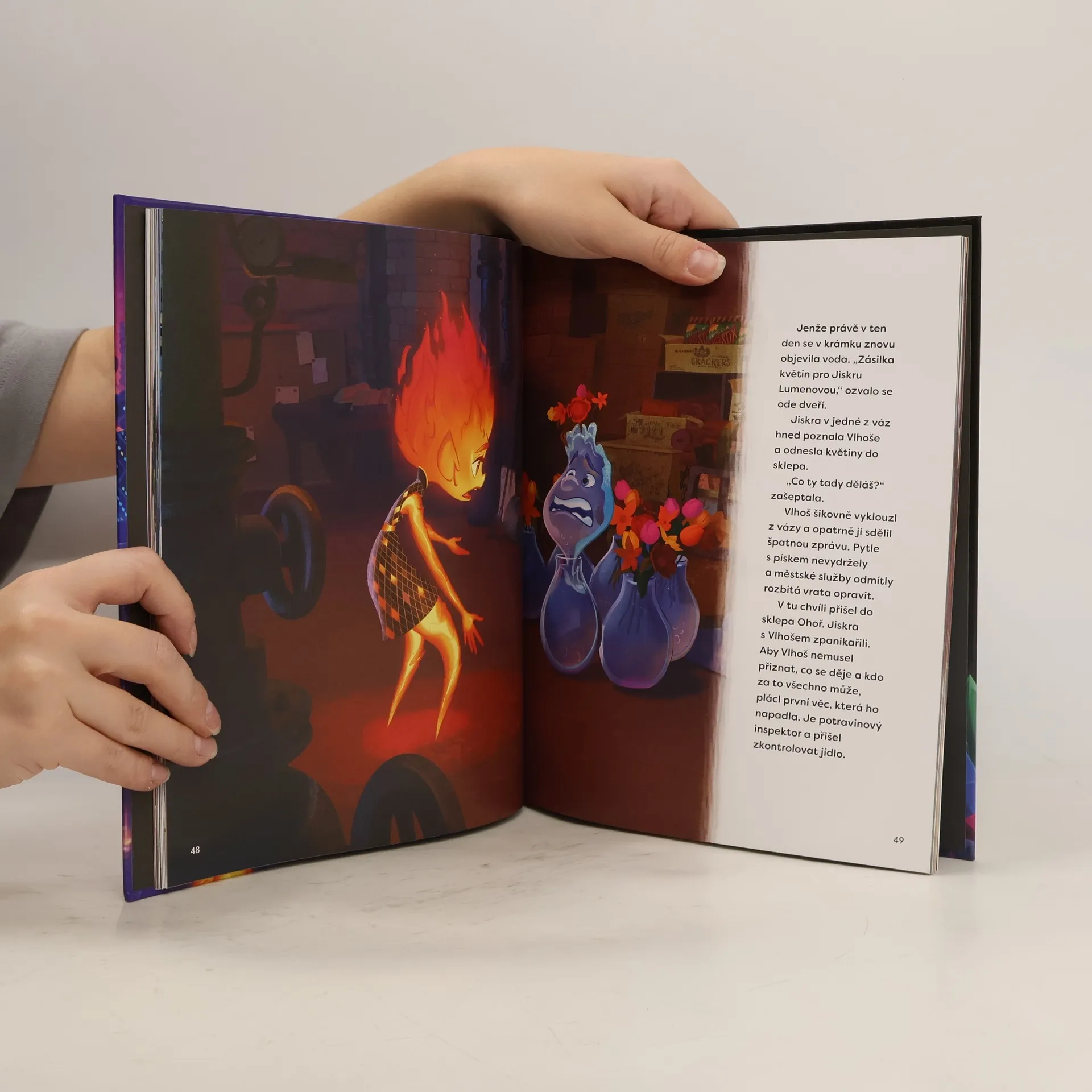 Pohádkový příběh z Města Živlů. Ve městě, kde spolu žijí obyvatelé ohně, vody, země a vzduchu, zjistí ohnivá mladá žena a muž, který plave s proudem, něco zásadního: kolik toho mají vlastně společného.