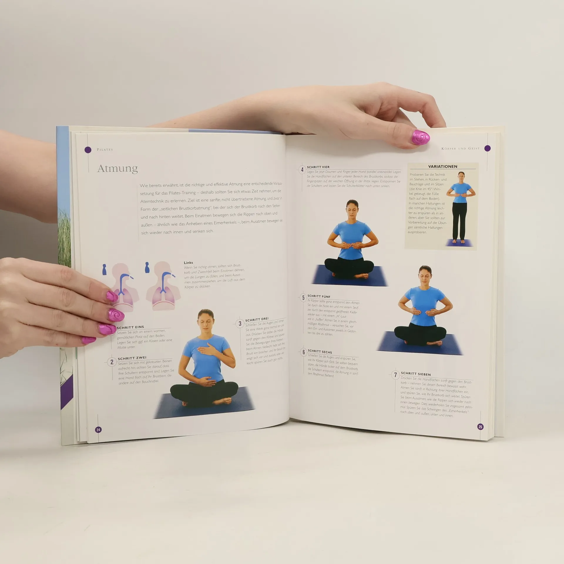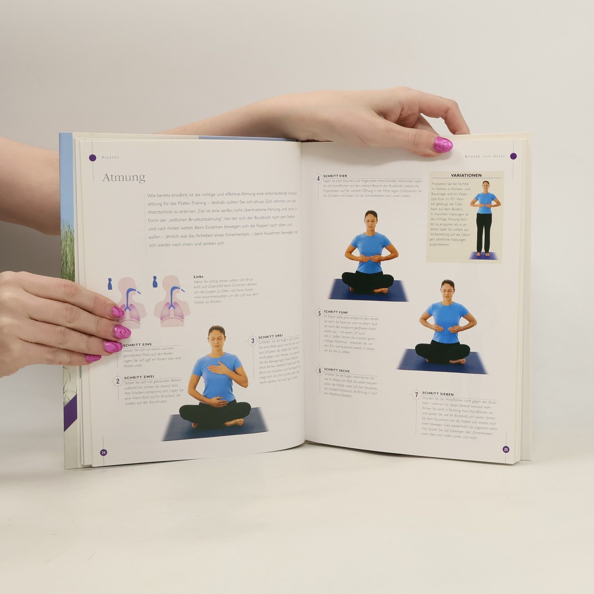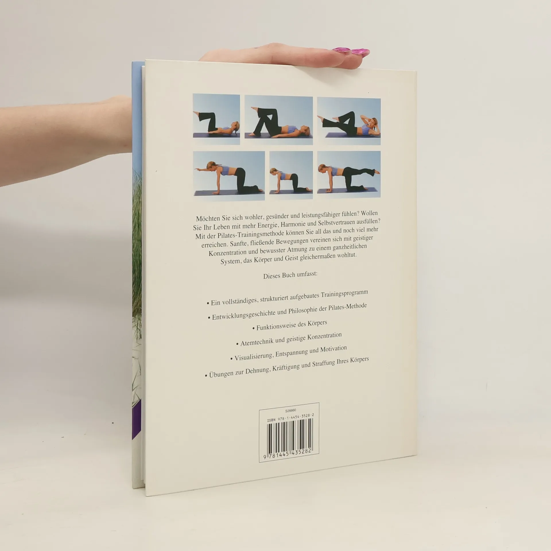 Vollständiges, strukturiert aufgebautes Trainingsprogramm mit zahlreichen Abbildungen. Entwicklungsgeschichte und Philosophie der Pilates Methode. Atemtechnik, geistige Konzentration; Visualisierung; Entspannung und Motivation. Einfache nachzuvollziehende Übungen zur Dehnung, Kräftigung und Straffung des Körpers. Durchgehend 4-farbig mit zahlreichen Fotos zur mühelosen Nachahmung.