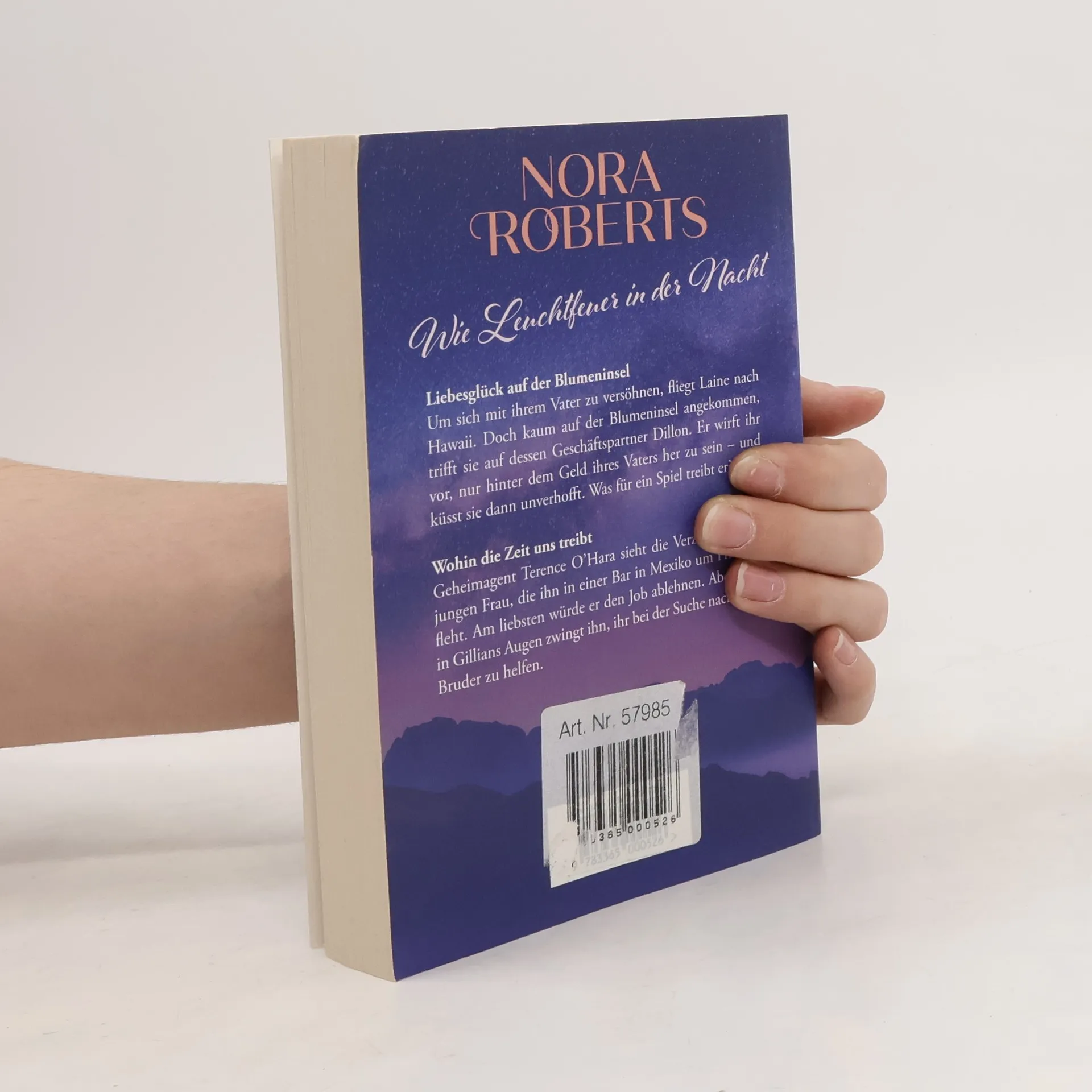 Reise ins Glück der großen Liebe Liebesglück auf der Blumeninsel Um sich mit ihrem Vater zu versöhnen, fliegt Laine nach Hawaii. Doch kaum auf der Blumeninsel angekommen, trifft sie auf dessen Geschäftspartner Dillon. Er wirft ihr vor, nur hinter dem Geld ihres Vaters her zu sein – und küsst sie dann unverhofft. Was für ein Spiel treibt er? Wohin die Zeit uns treibt Geheimagent Terence O Hara sieht die Verzweiflung der jungen Frau, die ihn in einer Bar in Mexiko um Hilfe anfleht. Am liebsten würde er den Job ablehnen. Aber etwas in Gillians Augen zwingt ihn, ihr bei der Suche nach ihrem Bruder zu helfen. »Die beste Autorin auf dem Planeten Erde.« Washington Post »Eine mitreißende Lektüre, die den Wunsch nach mehr weckt.« The Sun