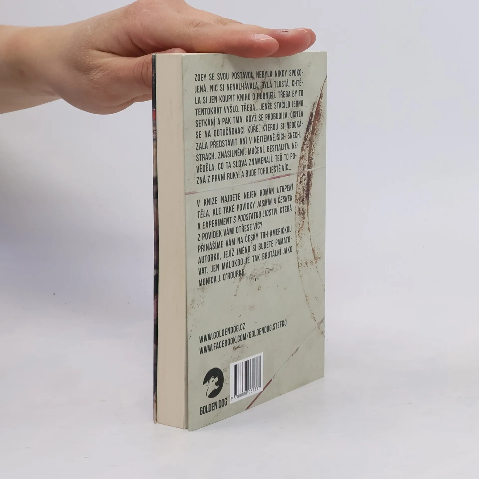 Zoey se svou postavou nebyla nikdy spokojená. Nic si nenalhávala, byla tlustá. Chtěla si jen koupit knihu o hubnutí. Třeba by to tentokrát vyšlo. Třeba… Jenže stačilo jedno setkání a pak tma. Když se probudila, ocitla se na odtučňovací kúře, kterou si nedokázala představit ani v nejtemnějších snech. Strach. Znásilnění. Mučení. Bestialita. Nevěděla, co ta slova znamenají. Teď to poznává z první ruky. A bude toho ještě víc… V knize najdete nejen román Utrpení těla, ale také povídky Jasmín a česnek a Experiment s podstatou lidství. Která z povídek vámi otřese víc? Přinášíme vám na český trh americkou autorku, jejíž jméno si budete pamatovat. Jen málokdo je tak brutální jako Monica J. O’Rourke.