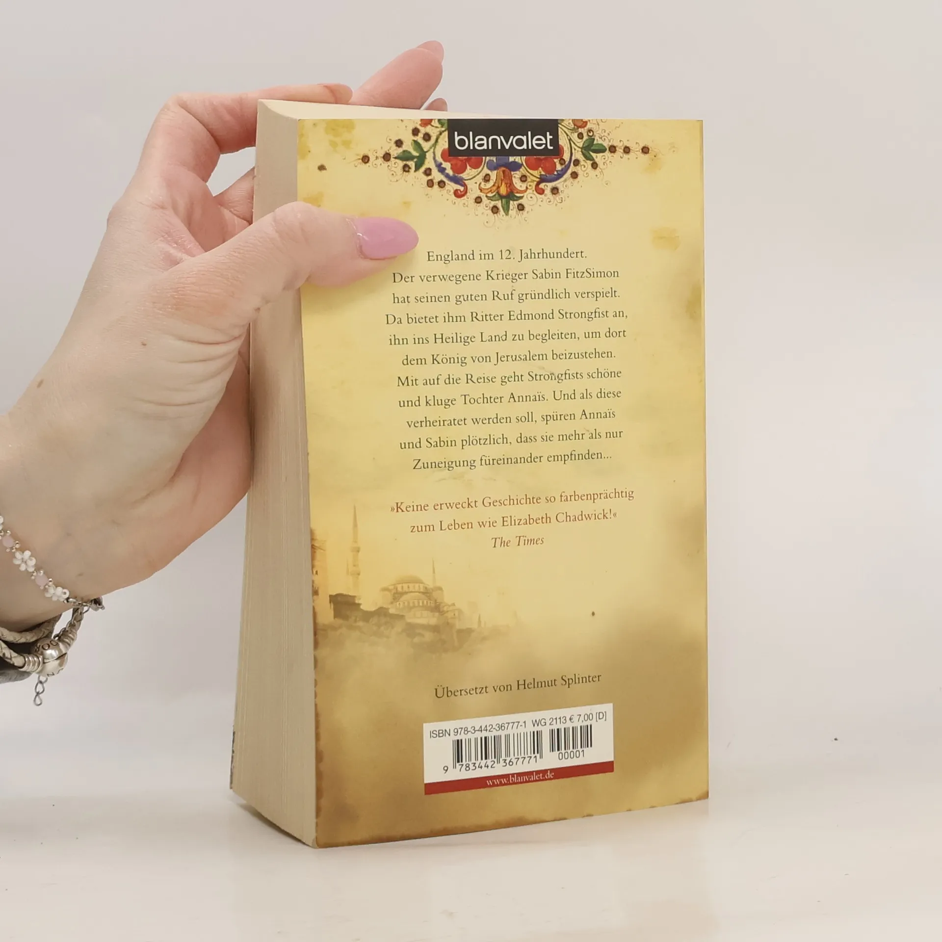 Barfleur 1120: Der verwegene Krieger Sabin FitzSimon, unehelicher Sohn eines normannischen Grafen, hat soeben seinen guten Ruf verspielt. Da macht ihm Ritter Edmond Strongfist das Angebot, ihn ins Heilige Land zu begleiten, um dort dem König von Jerusalem in einer schwierigen Zeit beizustehen. Sabin ist hoch erfreut, sah er doch einer düsteren Zukunft entgegen. Mit auf die Reise geht Strongfists schöne und kluge Tochter Annaïs. Als Sabin die Witwe des Königs heiraten muss, spüren Annaïs und er jedoch, dass sie mehr als nur Zuneigung füreinander empfinden. „Keine erweckt Geschichte so farbenprächtig zum Leben wie Elizabeth Chadwick!“ The Times „Elizabeth Chadwicks Romane sind wie eine erfrischende Briese. Ihr Stil ist kraftvoll, intelligent und witzig, ihre Hauptfiguren sind glaubwürdig und für den Leser nachvollziehbar, obwohl sie in einer längst vergangenen Zeit leben.“ Belfast Telegraph