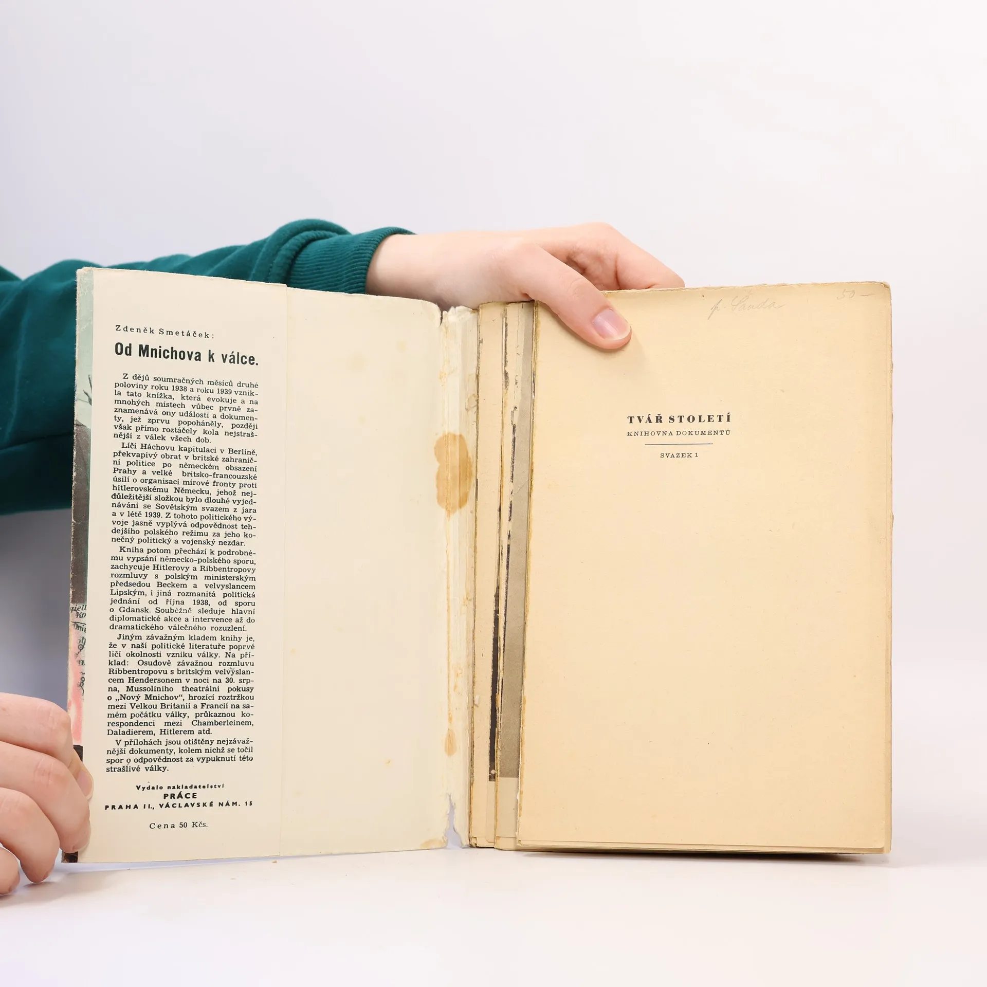 Z dějů soumračných měsíců druhé poloviny roku 1938 a roku 1939 vznikla tato knížka, která evokuje a na mnohých místech vůbec prvně zaznamenává ony události a dokumenty, jež zprvu popoháněly, později však přímo roztáčely kola nejstrašnější z válek všech dob.