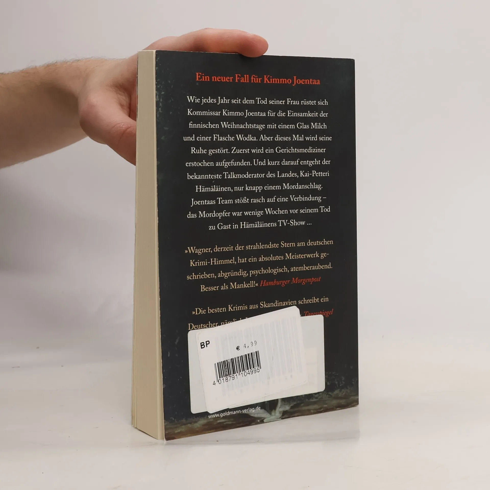 Der neue Fall für Kimmo Joentaa – erstmals im Taschenbuch! Wie jedes Jahr seit dem Tod seiner Frau rüstet sich Kommissar Kimmo Joentaa für die Einsamkeit der finnischen Weihnachtstage mit einem Glas Milch und einer Flasche Wodka. Aber seine Ruhe wird gestört. Zuerst wird ein Gerichtsmediziner erstochen aufgefunden. Kurz darauf entgeht der bekannteste Talkmoderator des Landes, Kai-Petteri Hämäläinen, nur knapp einem Mordanschlag. Joentaas Team stößt rasch auf eine Verbindung – das Mordopfer war wenige Wochen vor seinem Tod zu Gast in Hämäläinens TV-Show.