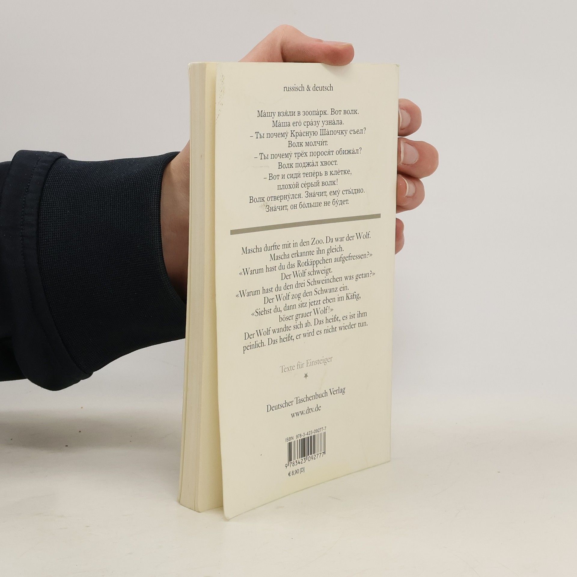 Illustrationen von Frieda Wiegand Wie lernen russische Kinder? Was sind die Themen, die ihnen als erstes in ihren Lesebüchern begegnen? Und was waren die Themen vor der Perestroika? Dieses Buch entstand 1991 aus Lesebuchtexten russischer Schulkinder und Texten für Kinder berühmter Autoren (u. a. Charms, Majakowskij, Solschenizyn, Tolstoj, Tscharuschin, Tschukowskij). Wer noch nicht viel Russisch kann, aber besondere Texte kennenlernen möchte, hat hier einen Lese-Leckerbissen! Literarisches, gereimt und ungereimt, Zungenbrecher, Rätsel und Kopfzerbrecher, Scherzverse, Volksmärchen dtv zweisprachig – Die Vielfalt der Sprachen auf einen Blick Die Reihe umfasst drei Sprach-Niveaus – Einsteiger, Fortgeschrittene und Könner – und mittlerweile über 130 Titel in vielen Sprachen. Landeskunde, Kulturgeschichte und Redewendungen, zeitgenössische und klassische Texte in unterschiedlichen Formen und Genres – von der Kurzgeschichte bis zum Krimi – für jeden Lesegeschmack ist etwas dabei. Einzigartig ist die konsequente Zeilengleichheit zwischen Originaltext und Übersetzung, damit man vom ersten bis zum letzten Wort in zwei Sprachwelten zuhause ist.