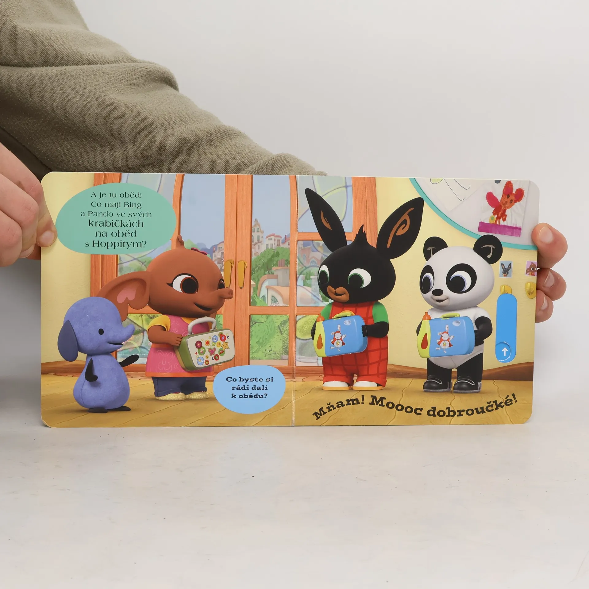 Leporelo s posuvnými okénky. Chcete si hrát s oblíbenými postavami a rozhýbat je? S posuvnými a otočnými okénky si užijete spoustu legrace! Okénka umožní dětem hledat schované kamarády, zatančit si s nimi nebo zjistit, co se ukrývá ve svačinové krabičce. Hravá a krásně ilustrovaná knížka s posuvnými okénky a kolečky je ideální pro menší zvídavé děti. Pohyblivé prvky procvičí i jemnou motoriku.