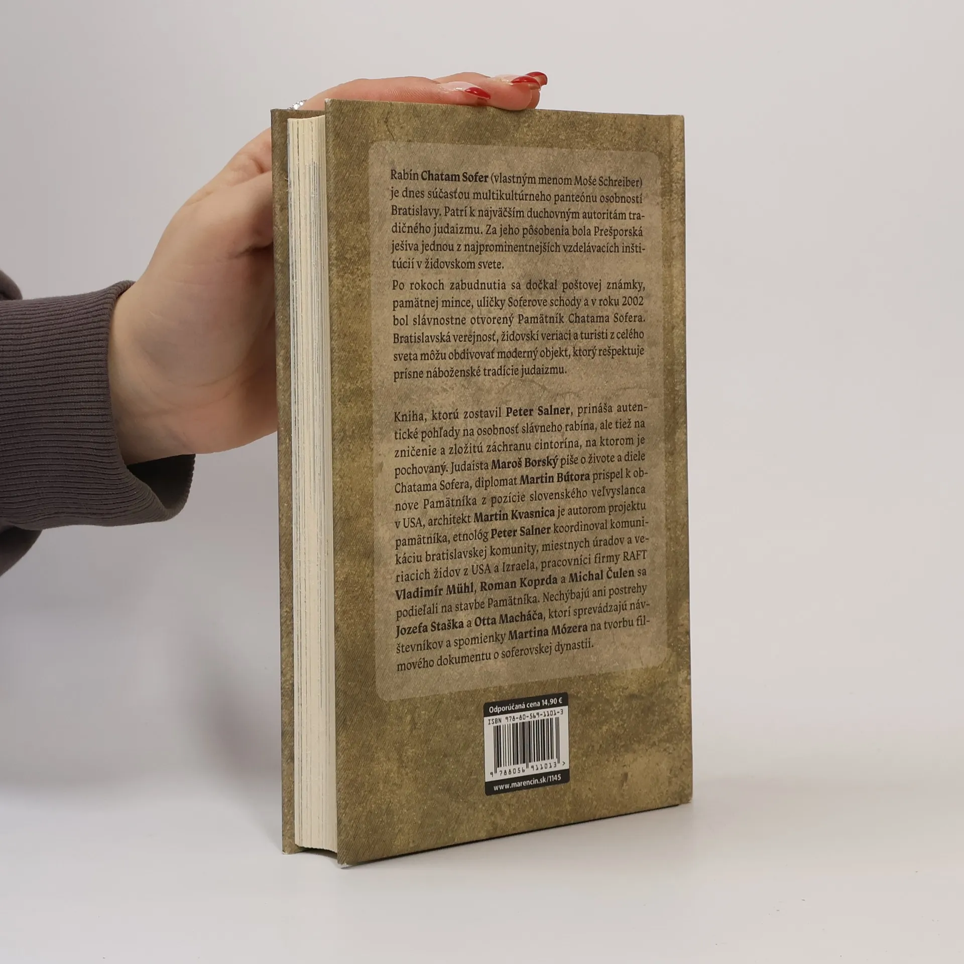 Rabín Chatam Sofer je dnes významnou osobnosťou Bratislavy, po desiatkach rokov zabudnutia sa dočkal poštovej známky, pamätnej mince a uličky pomenovanej po ňom. Jeho hrobka, spolu s ďalšími významnými rabínmi, sa nachádza v unikátnom areáli, ktorý vítajú návštevníkov pri vstupe do mesta. Moše Schreiber, známy ako Chatam Sofer (1762 – 1839), bol jednou z najvýznamnejších duchovných autorít tradičného judaizmu a jeho intelektuálne schopnosti mu vyniesli titul „gaon“. Ako hlavný rabín Bratislavy viedol Prešporskú ješivu, ktorú povýšil na jednu z najprestížnejších vzdelávacích inštitúcií v židovskom svete, pričom vychoval novú generáciu rabínov, ktorí šírili jeho učenie. V júli 2022 sa konalo 20. výročie otvorenia Pamätníka Chatama Sofera, moderného objektu rešpektujúceho židovské tradície. Kniha prináša rôzne pohľady na zničenie a obnovu pamätníka, autentické spomienky a úspechy aj problémy stavby. Zostavil ju Peter Salner a obsahuje príspevky autorov ako Maroš Borský, Martin Bútora, Martin Kvasnica a ďalší, ktorí sa podieľali na projekte a obnovy pamätníka. Ich spomienky a fotografie odhaľujú originálne a neznáme fakty.