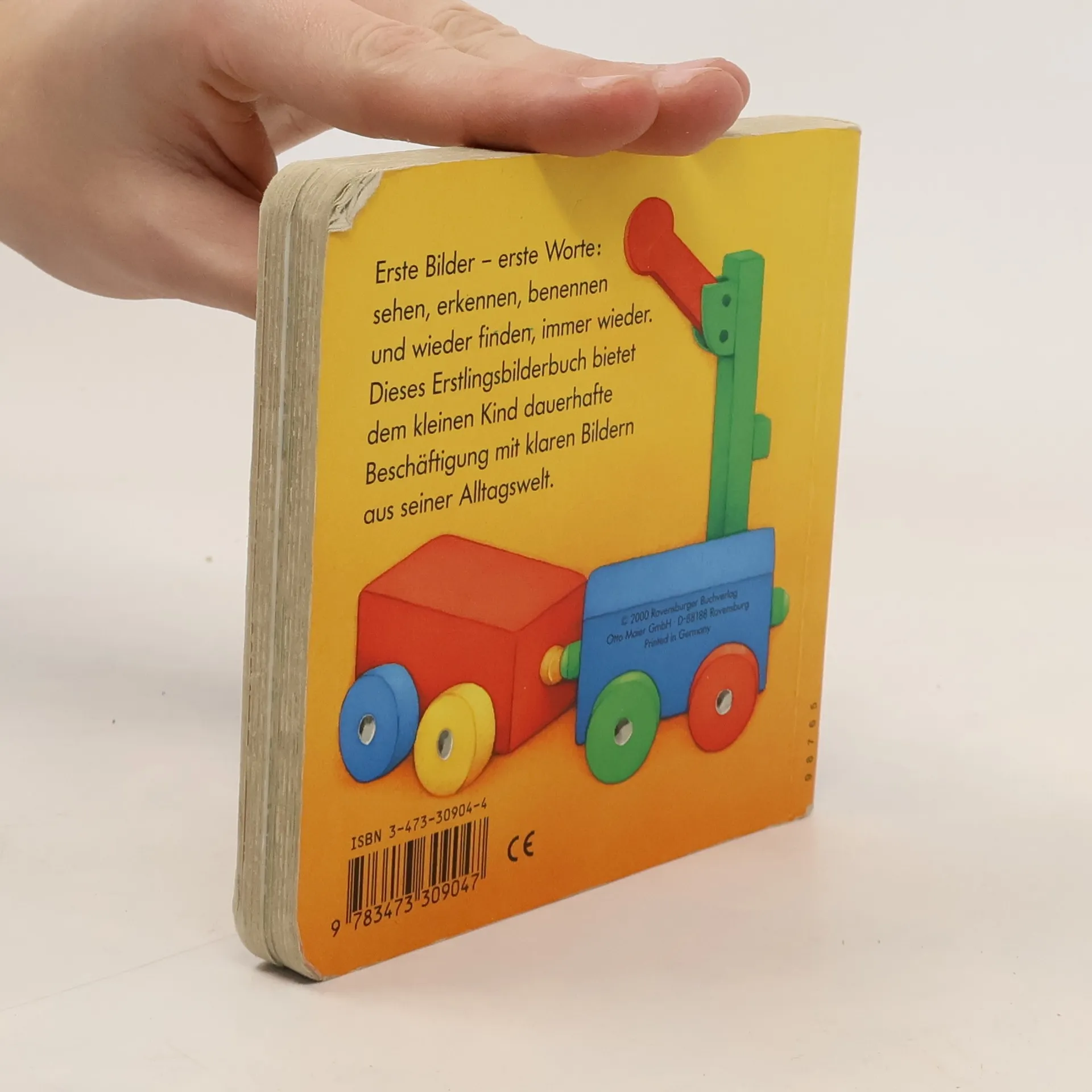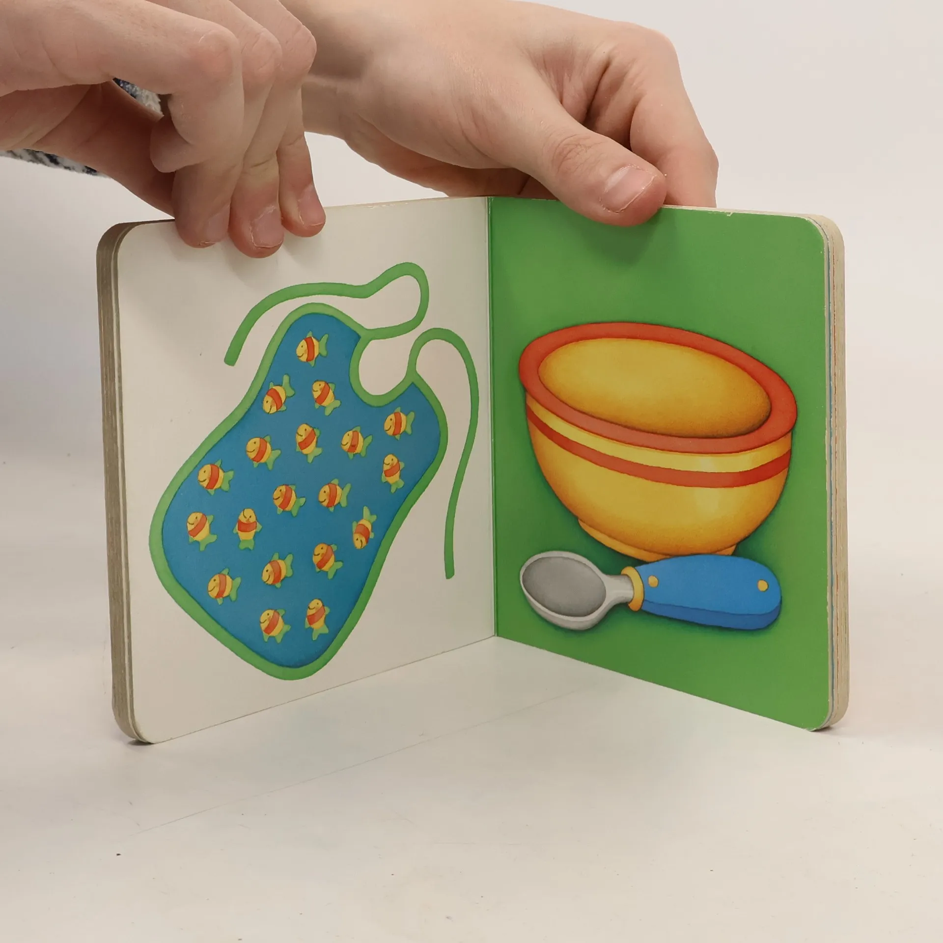 Ein Pappbilderbuch ohne Worte: Allererste Gegenstände aus dem Kleinkinderalltag sind zu betrachten und zu benennen.