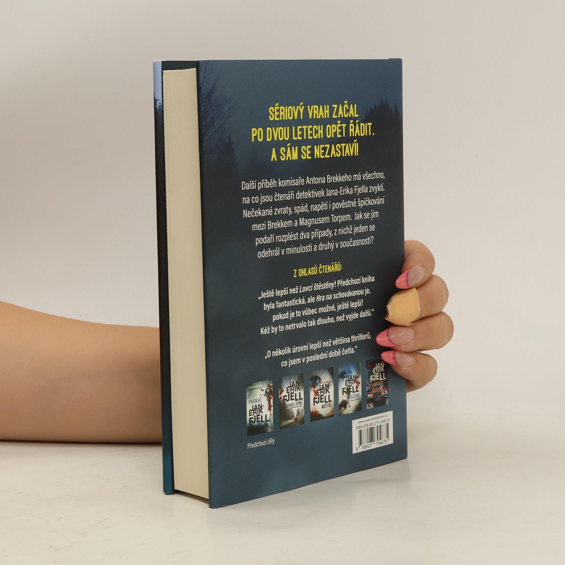 Anton Brekke se vrací se sedmým případem, z něhož opět tuhne krev v žilách. Všechno nasvědčuje tomu, že uprchlý sériový vrah Stig Hellum se po dvou letech vrátil a začal opět zabíjet. K první oběti se brzy přidá druhá, jenže detektiv Anton Brekke s parťákem Magnusem Torpem nemají jedinou indicii, která by je k dopadení vraha přiblížila. Místo odpovědí přibývají jen další otazníky a jména na seznamu podezřelých. Při pátrání po tom, kde se Hellum celé dva roky skrýval a kdo mu pomohl k útěku, se ukazuje, že v předchozím vyšetřování jsou značné nedostatky. Že by do všeho byl zapleten někdo od policie? Nebo snad spisovatel, který tvrdí, že sériový vrah je jeho přítelem, a právě o něm vydal knihu? A jak k rozluštění případu přispějí záhadné pohlednice z norských výletních lodí, které dostaly rodiny obou obětí?