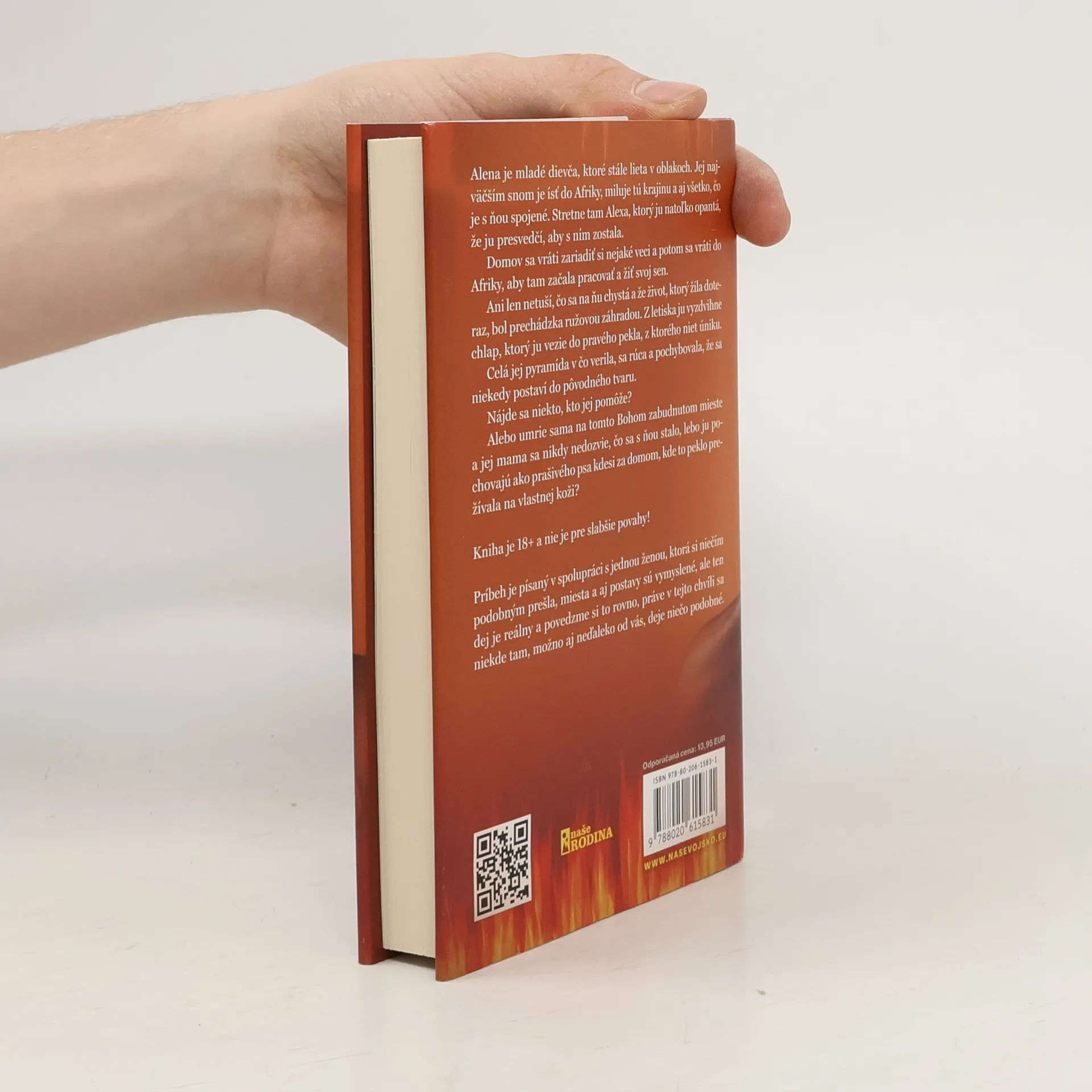 Alena je mladé dievča, ktoré stále lieta v oblakoch. Jej najväčším snom je ísť do Afriky, miluje tú krajinu a aj všetko, čo je s ňou spojené. Stretne tam Alexa, ktorý ju natoľko opantá, že ju presvedčí, aby s ním zostala.Domov sa vráti zariadiť si nejaké veci a potom sa vráti do Afriky, aby tam začala pracovať a žiť svoj sen.Ani len netuší, čo sa na ňu chystá a že život, ktorý žila doteraz, bol prechádzka ružovou záhradou. Z letiska ju vyzdvihne chlap, ktorý ju vezie do pravého pekla, z ktorého niet úniku.Celá jej pyramída v čo verila, sa rúca a pochybovala, že sa niekedy postaví do pôvodného tvaru.Nájde sa niekto, kto jej pomôže?Alebo umrie sama na tomto Bohom zabudnutom mieste a jej mama sa nikdy nedozvie, čo sa s ňou stalo, lebo ju pochovajú ako prašivého psa kdesi za domom, kde to peklo prežívala na vlastnej koži?Kniha je 18+ a nie je pre slabšie povahy!Príbeh je písaný v spolupráci s jednou ženou, ktorá si niečím podobným prešla, miesta a aj postavy sú vymyslené, ale ten dej je reálny a povedzme si to rovno, práve v tejto chvíli sa niekde tam, možno aj neďaleko od vás, deje niečo podobné.