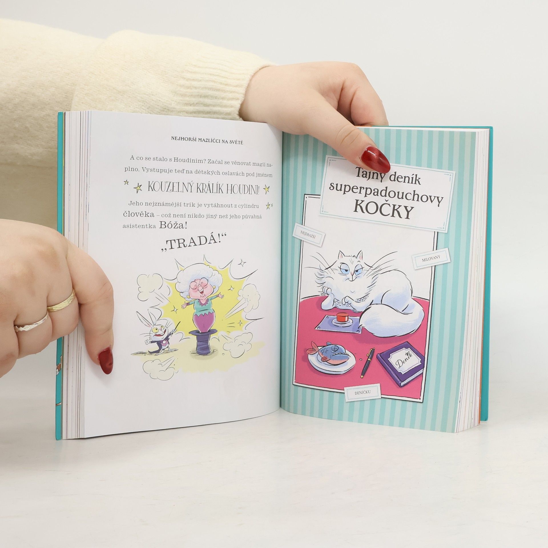 Musíme vás předem varovat: Z téhle sbírky deseti příběhů o nejbláznivějších domácích mazlíčcích na světě vás bude smíchy bolet břicho! Zapomeňte na roztomilé čumáčky a sametovou hebkost kožíšků, tohle bude přehlídka zvířecích výstředností. Najdete tu zvířata hodná i zlá, ba přímo lotrovsky prohnaná, mazlíčky velké jako dům i bestie, které vás slupnou jako malinu.Budete žasnout nad Houdinim, králíkem z kouzelníkova klobouku. Vypravíte se na cestu kolem světa s nadzvukovou želvou jménem Vžum. Stanete se svědky toho, jak Grizelda, medvědice grizzly s velkým tajemstvím, obrací dům vzhůru nohama. A to zdaleka není vše!