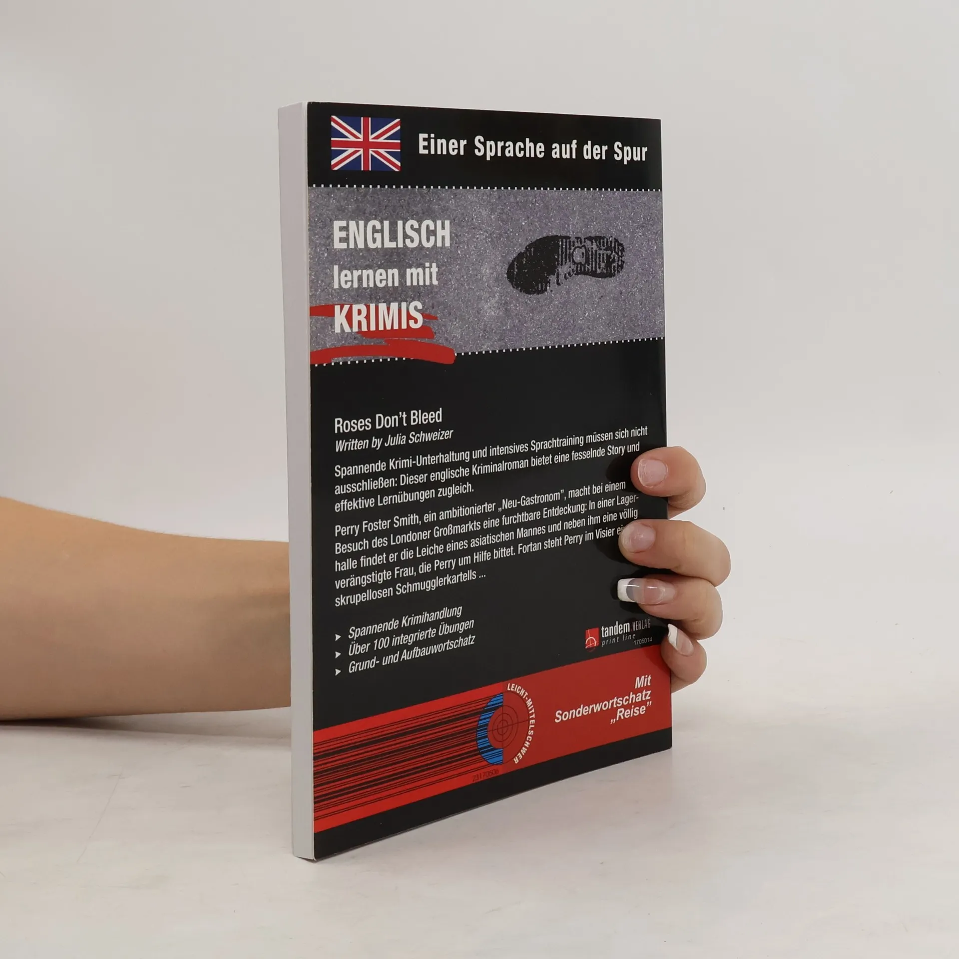 Einer Sprache auf der Spur: Englisch lernen mit Krimis Diese Reihe englischsprachiger Kriminalromane bietet fesselnde Storys und intensives Englisch-Training zugleich. Im Laufe der Handlung sind ca. 100 Lernübungen eingestreut, die der Leser zwischendurch bearbeiten kann. Auf diese Weise wird das Gelesene vertieft und der Lernfortschritt überprüft. Roses Don't Bleed: Perry Foster Smith, ein ambitionierter „Neu-Gastronom“, macht bei einem Besuch des Londoner Großmarkts eine furchtbare Entdeckung: In einer Lagerhalle findet er die Leiche eines asiatischen Mannes und neben ihm eine völlig verängstigte Frau, die Perry um Hilfe bittet. Fortan steht Perry im Visier eines skrupellosen Schmugglerkartells. Mit Sonderwortschatz „Reise“ Text- und Übungsniveau: leicht bis mittelschwer Anspruchsvollere Vokabeln werden am Seitenende übersetzt. Ein Abschlussquiz stellt Fragen zur Handlung. Hier kann der Leser im Selbsttest prüfen, ob er die Handlung verstanden hat. Fremdsprachenkenntnisse auf unterhaltsame Weise verbessern, nach dem Motto: gespannt Krimis lesen – entspannt Englisch lernen.
