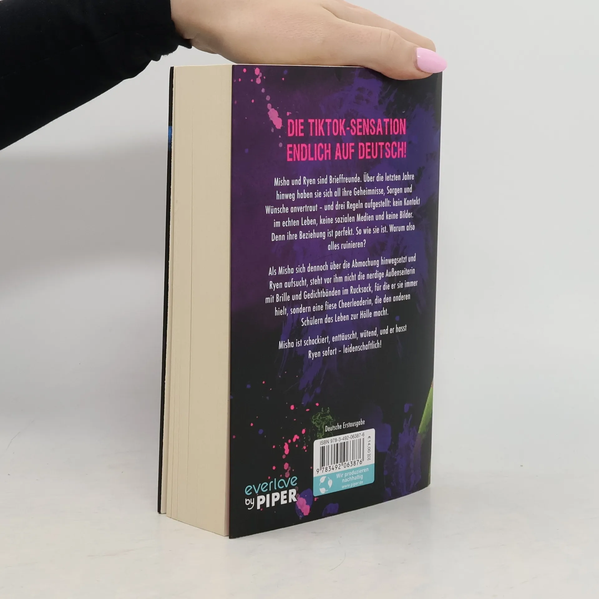 Misha und Ryen sind Brieffreunde. Sie haben sich über Jahre hinweg all ihre Geheimnisse, Sorgen und Wünsche anvertraut – und sie haben drei Regeln: kein Kontakt im echten Leben, keine sozialen Medien und keine Bilder. Denn das, was sie miteinander haben, ist perfekt. Warum es also ruinieren? Als Misha sich dennoch über die Abmachung hinwegsetzt und Ryen aufsucht, steht vor ihm nicht die nerdige Außenseiterin mit Brille und Gedichtbänden im Rucksack, für die er sie hielt, sondern eine fiese Cheerleaderin, die den anderen Schülern das Leben zur Hölle macht. Misha ist schockiert, enttäuscht, wütend, und er hasst Ryen sofort – leidenschaftlich!