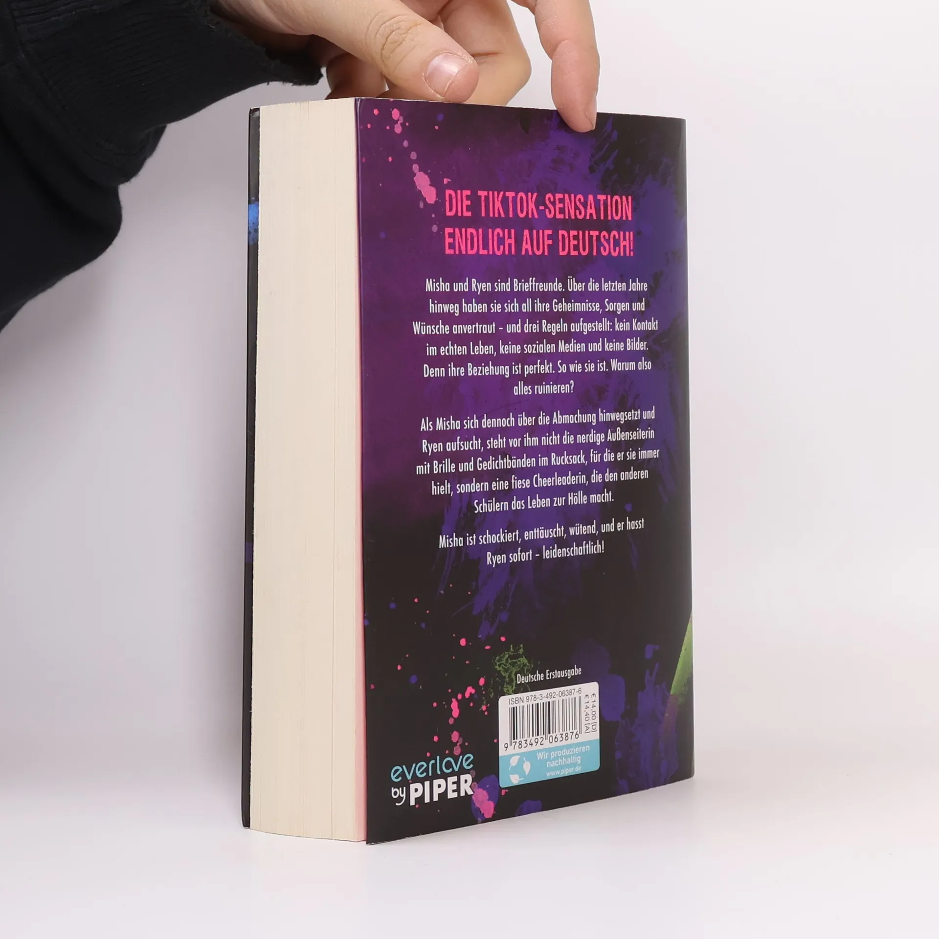Misha und Ryen sind Brieffreunde. Sie haben sich über Jahre hinweg all ihre Geheimnisse, Sorgen und Wünsche anvertraut – und sie haben drei Regeln: kein Kontakt im echten Leben, keine sozialen Medien und keine Bilder. Denn das, was sie miteinander haben, ist perfekt. Warum es also ruinieren? Als Misha sich dennoch über die Abmachung hinwegsetzt und Ryen aufsucht, steht vor ihm nicht die nerdige Außenseiterin mit Brille und Gedichtbänden im Rucksack, für die er sie hielt, sondern eine fiese Cheerleaderin, die den anderen Schülern das Leben zur Hölle macht. Misha ist schockiert, enttäuscht, wütend, und er hasst Ryen sofort – leidenschaftlich!