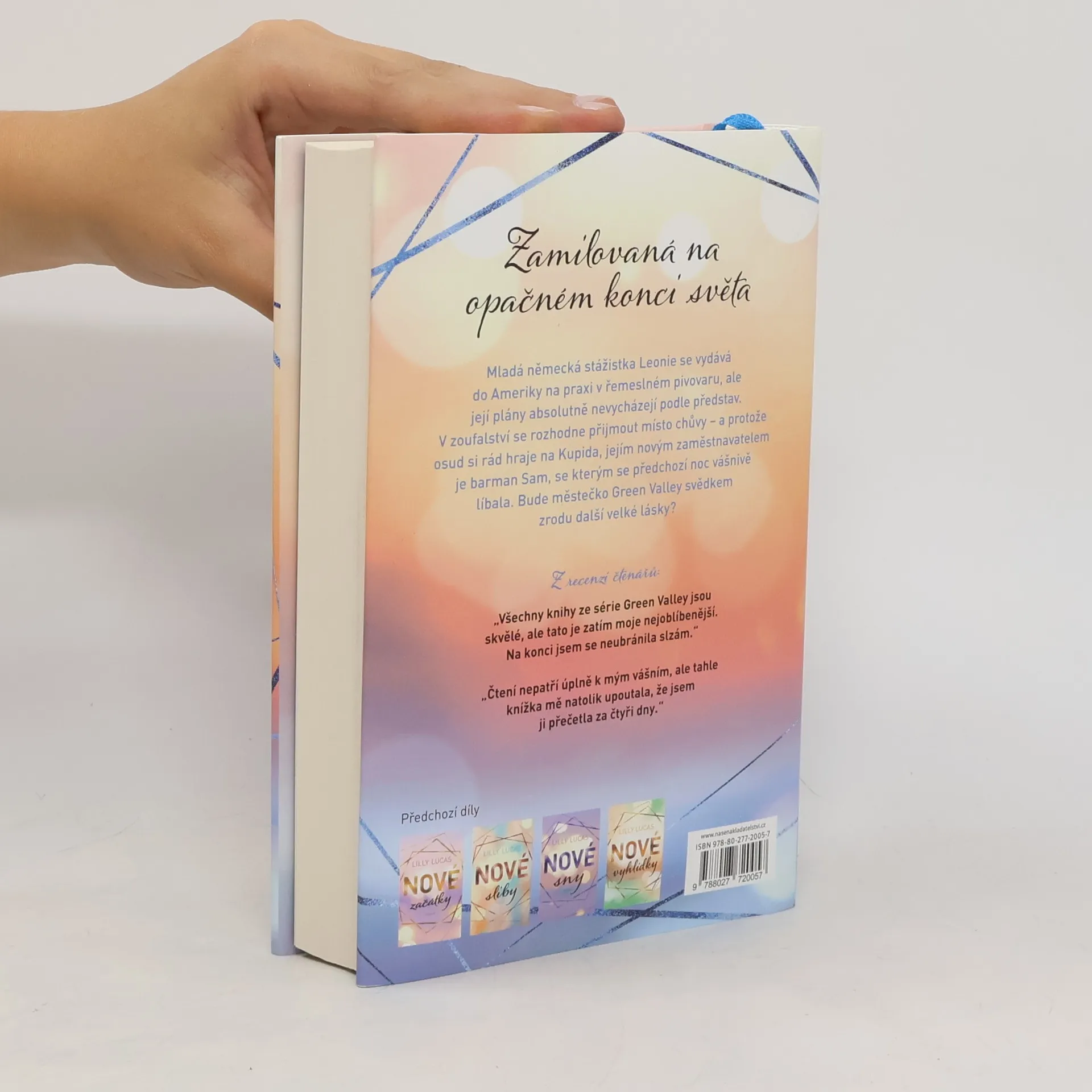 Zamilovaná na druhém konci světa. Když Leonie uvízne v malém městečku Green Valley ve Skalistých horách, má za sebou perný den. Zahraniční praxe v pivovaru řemeslného piva vybouchla. Naprosto zoufalá si vylije srdce před šarmantním barmanem Samem, protože bez práce jí nezbývá nic jiného, než se vrátit domů do Německa. Mezi oběma dojde ke žhavému polibku, ale potom se Sam najednou stáhne. Další den se chce Leonie ucházet o práci chůvy a naprosto nečekaně stojí proti Samovi: Ten je otcem malé Mayi... Bušení srdce, velké sny a pocit, že jste doma: To je zamilovaná série Green Valley od Lilly Lucas.