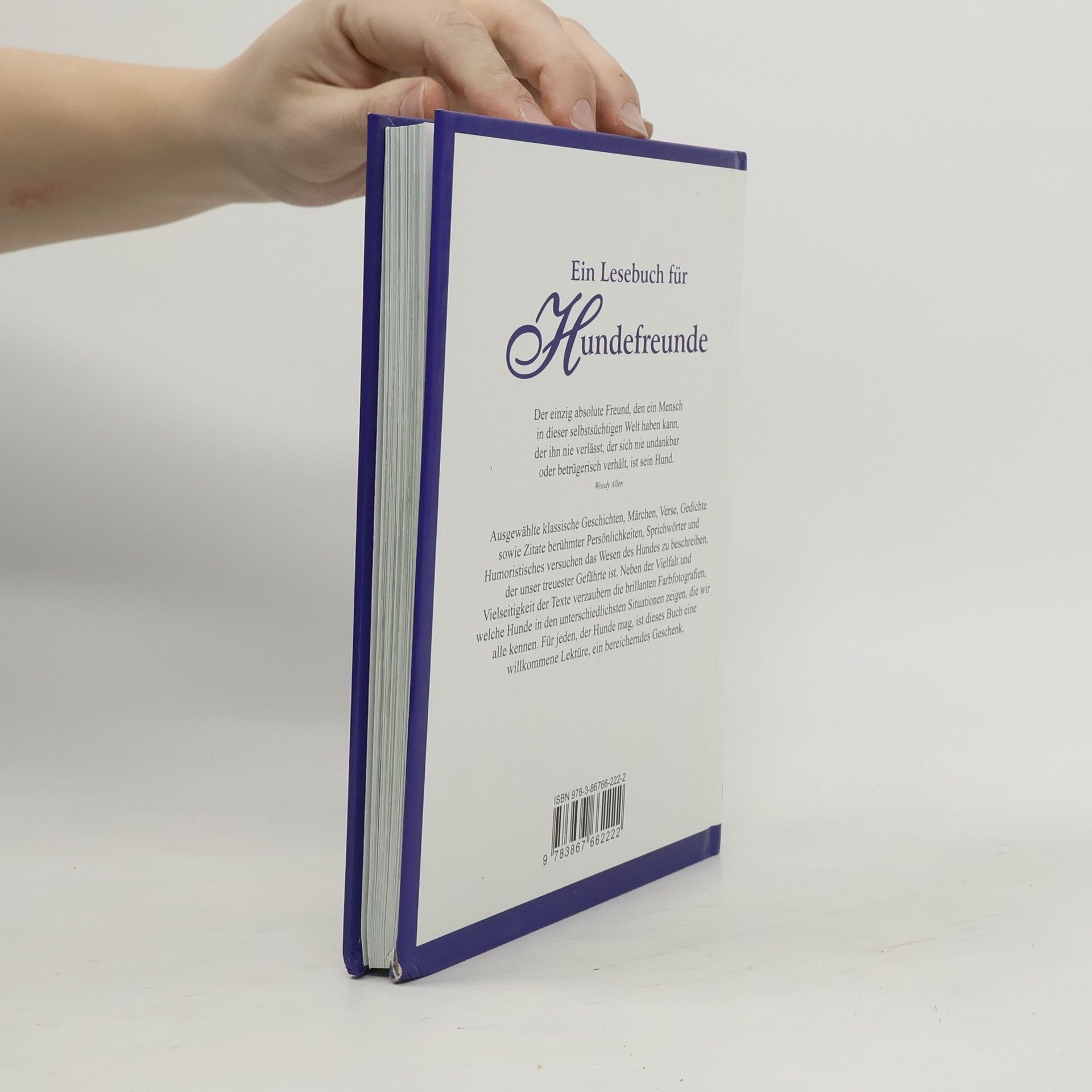 Der einzig absolute Freund, den ein Mensch in dieser selbstsüchtigen Welt haben kann, der ihn nie verlässt, der sich nie undankbar oder betrügerisch verhält, ist sein Hund. Woody Allen Ausgewählte klassische Geschichten, Märchen, Verse, Gedichte sowie Zitate berühmter Persönlichkeiten, Sprichwörter und Humoristisches versuchen das Wesen des Hundes zu beschreiben, der unser treuester Gefährte ist. Neben der Vielfalt und Vielseitigkeit der Texte verzaubern die brillanten Farbfotografien, welche Hunde in den unterschiedlichsten Situationen zeigen, die wir alle kennen. Für jeden, der Hunde mag, ist dieses Buch eine willkommene Lektüre, ein bereicherndes Geschenk.