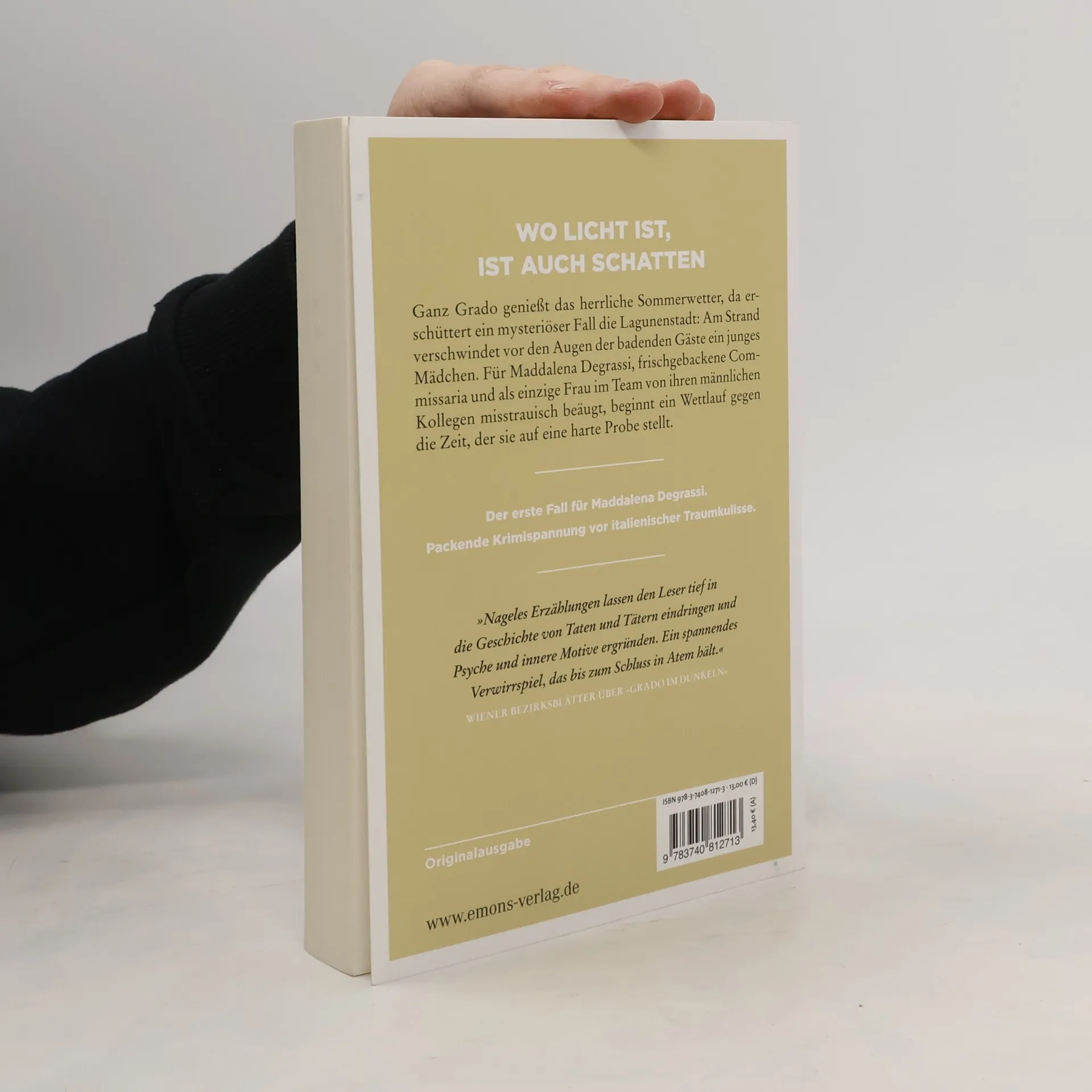 Wie alles begann: der erste Fall für Maddalena Degrassi. Ganz Grado genießt das herrliche Sommerwetter, da erschüttert ein mysteriöser Fall die Lagunenstadt: Am Strand verschwindet vor den Augen der badenden Gäste ein junges Mädchen. Für Maddalena Degrassi, frischgebackene Commissaria und als einzige Frau im Team von ihren männlichen Kollegen misstrauisch beäugt, beginnt ein Wettlauf gegen die Zeit, der sie auf eine harte Probe stellt.