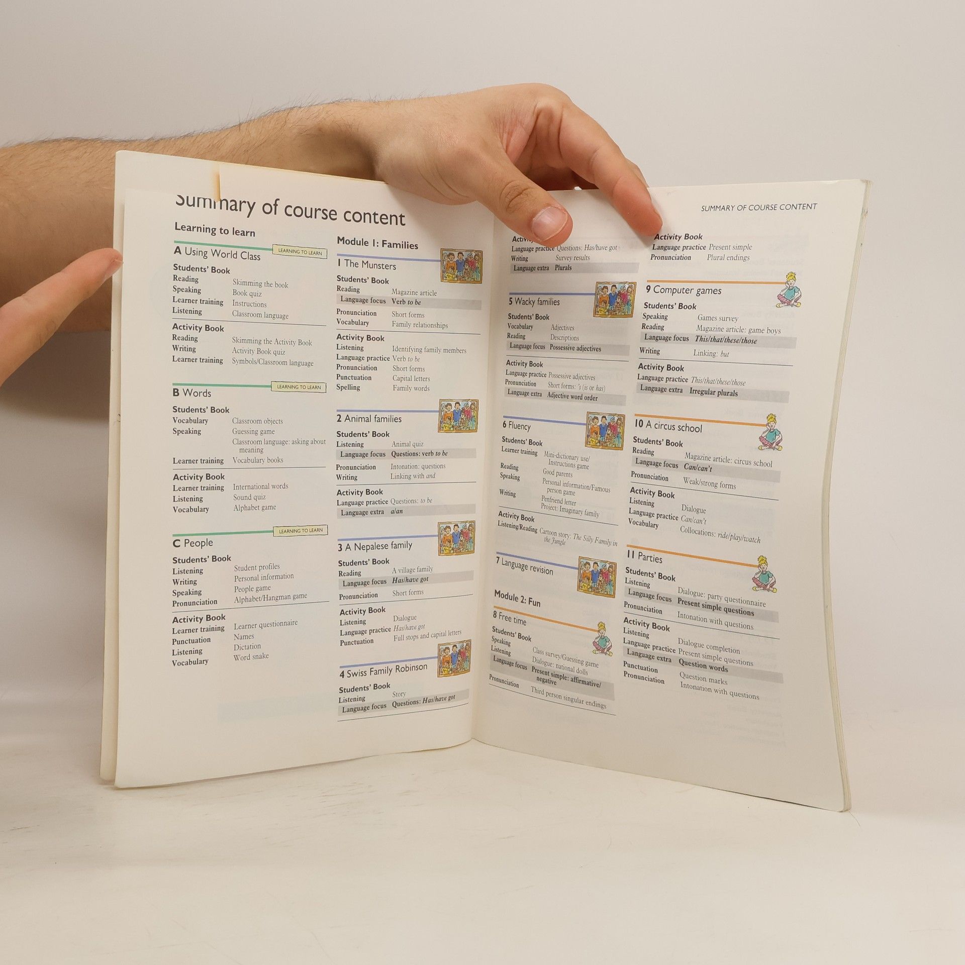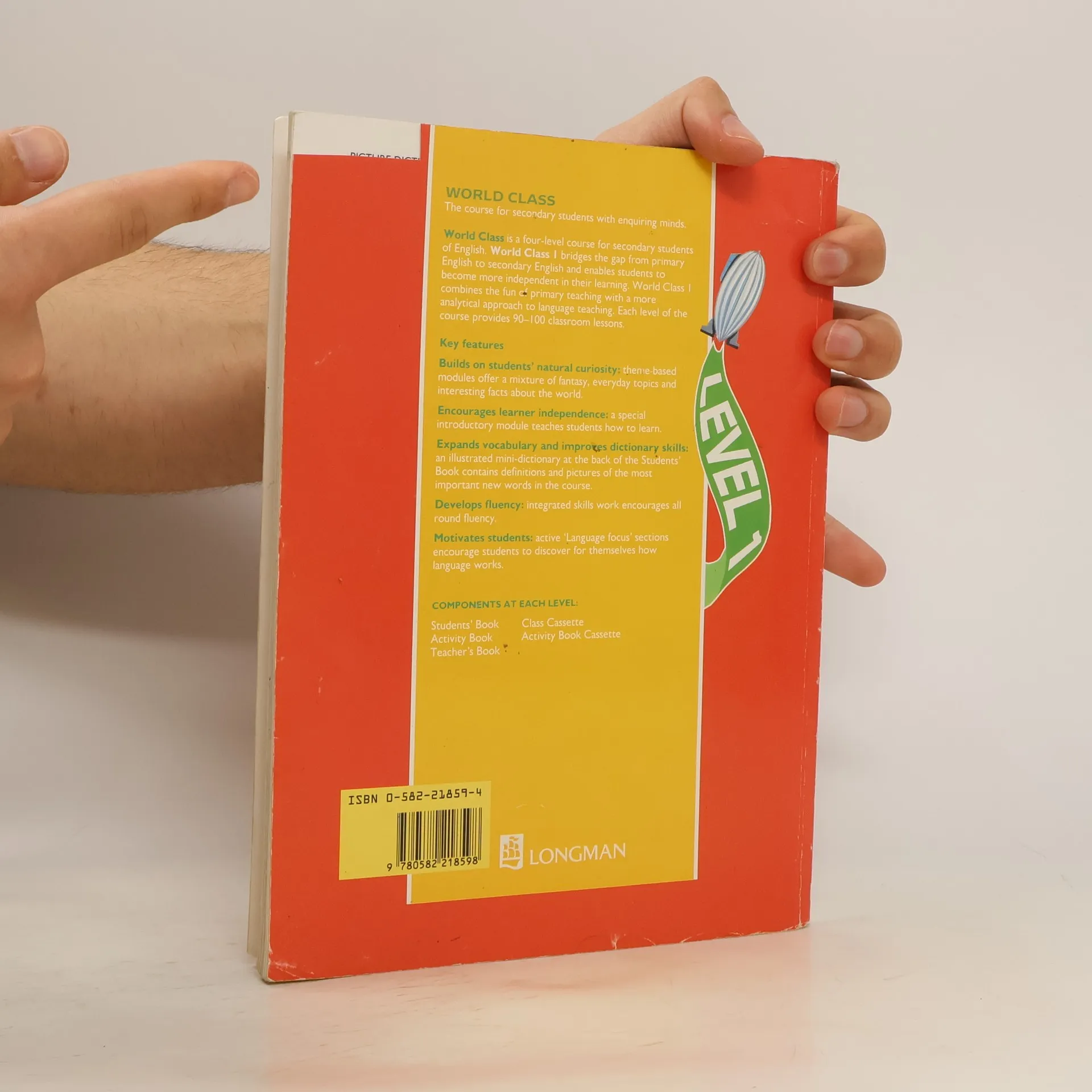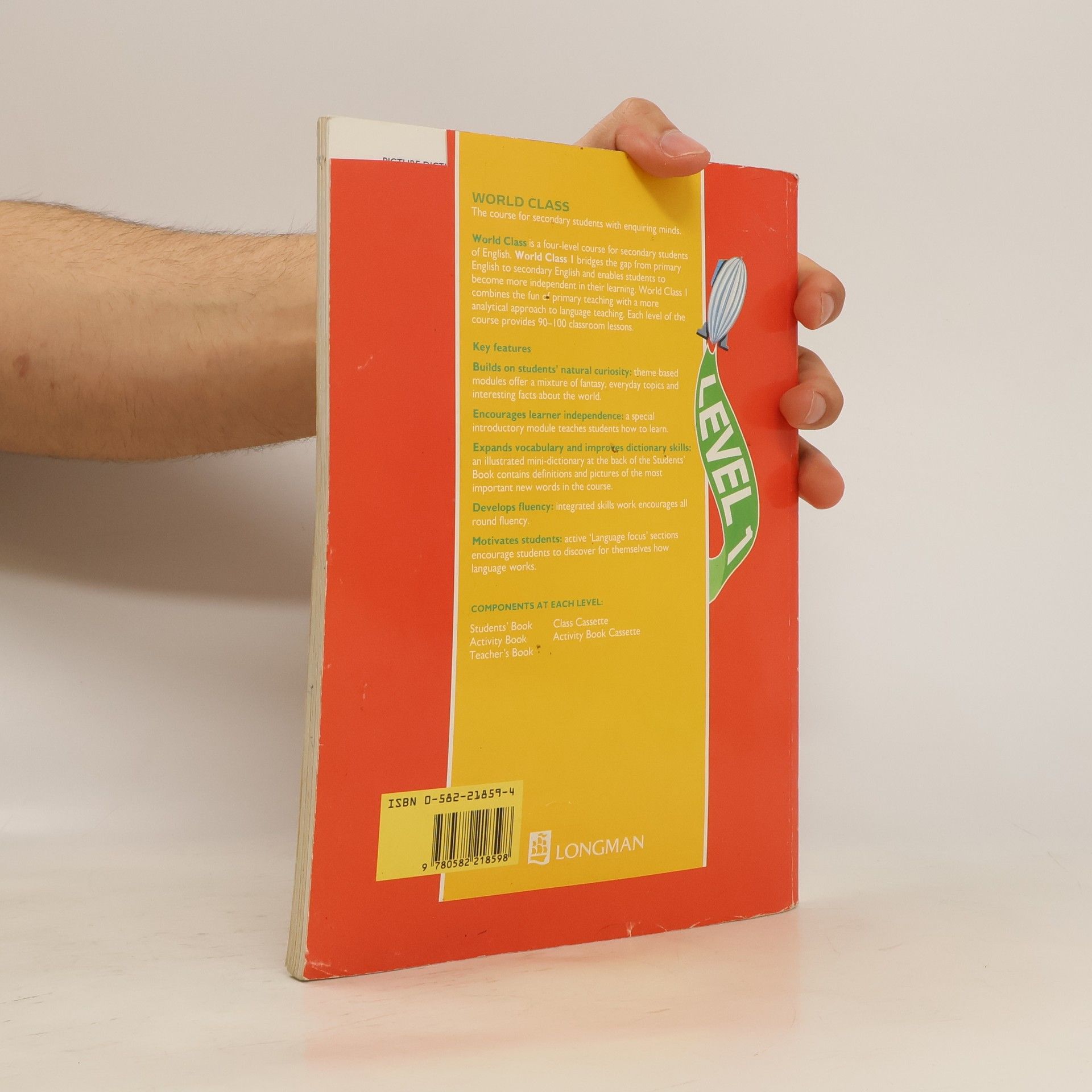 World Class is a four-stage course for secondary students of English. Each stage provides 90-100 classroom lessons. Once they have completed World Class 4 (intermediate level), students should be ready to move on to a First Certificate course. The course combines facts about the world with stories of fantasy and fiction, practical activities and everyday topics. This cross-curricular approach builds on students' natural curiosity. Because the modules contain the kind of material which students enjoy in their own language, they can relate to what they are learning.