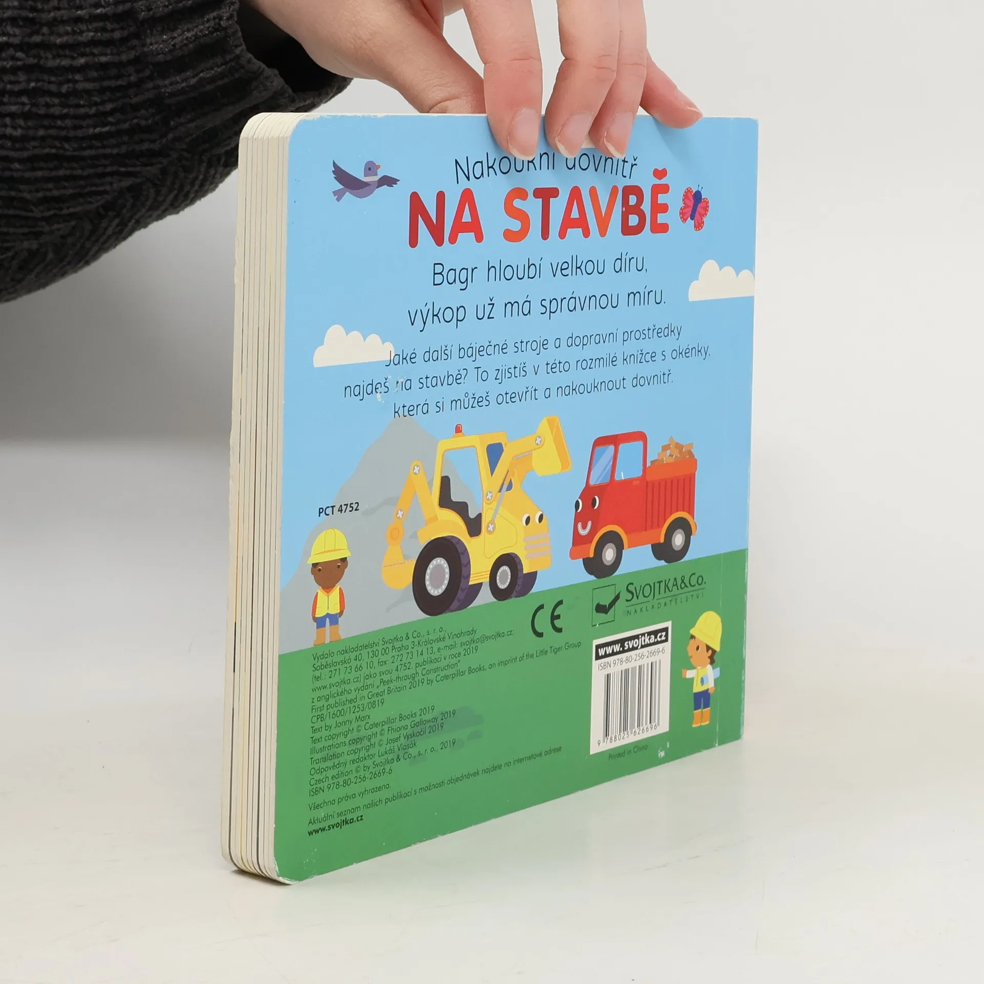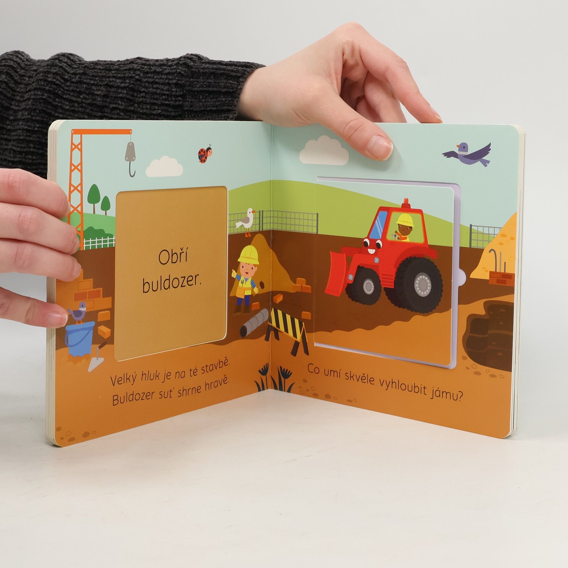 Bagr hloubí velkou díru, výkop už má správnou míru." Vítejte na stavbě. Že jsou vaše děti celé paf z dopravních prostředků, silných strojů, jeřábů, bagrů a všeho, co se kolem staveniště točí? Pak jistě ocení toto roztomilé veršované leporelo s velkými otvíracími okénky, skrz která lze nahlédnout přímo na stavbu. Malý stavitel či malá stavitelka tak ve vteřině zjistí, co se používá k míchání betonu, který stroj umí zdvihat těžké předměty a čím se do práce dostane stavitel Standa. Knížka rozvíjí jemnou motoriku a základní slovní zásobu.