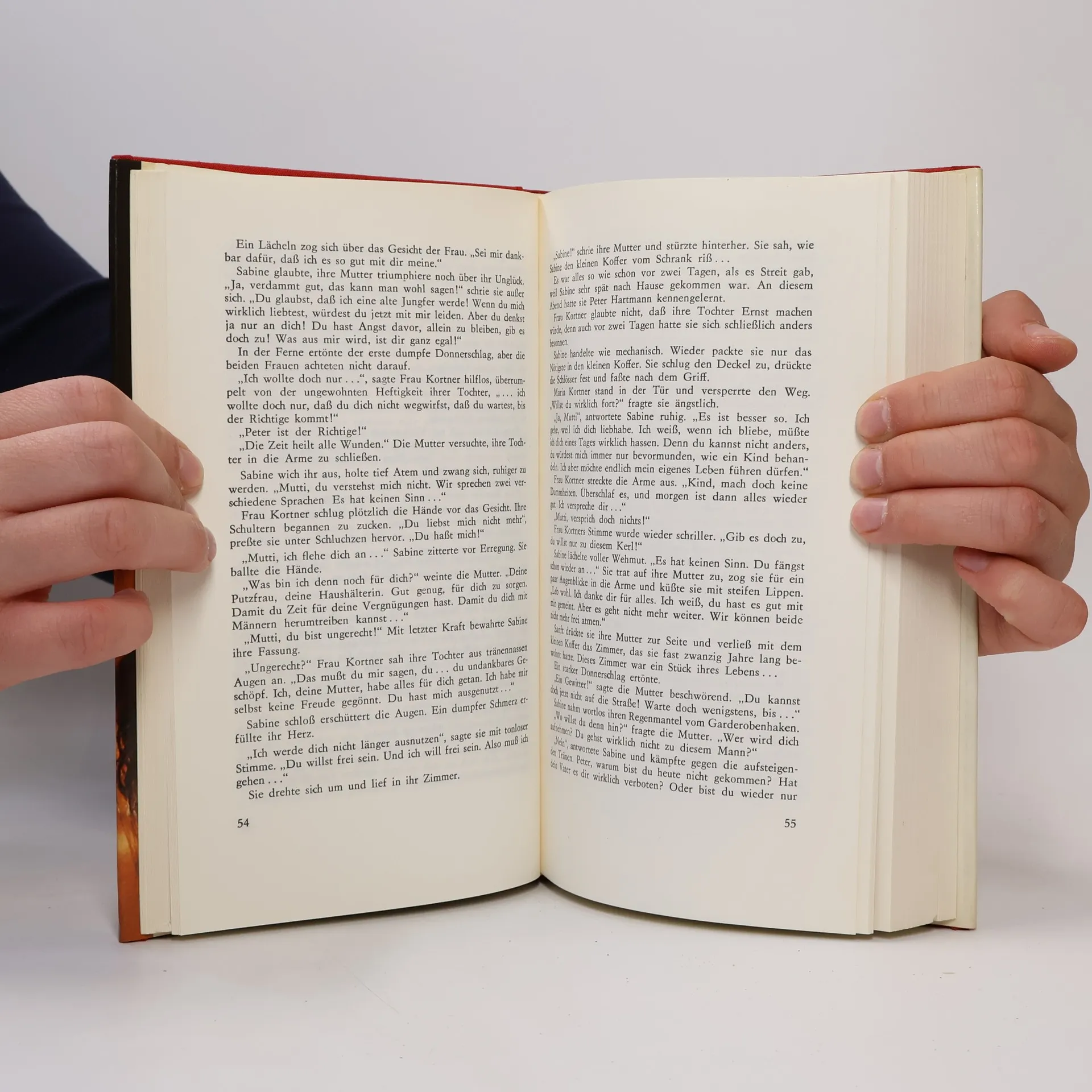 In einem steckengebliebenen Fahrstuhl lernen sich Sabine Kortner und Peter, der Sohn des wohlhabenden Paul Hartmann, kennen und verlieben sich. Ihre große Liebe wird jedoch von den Eltern beider Seiten in Frage gestellt. Sabines Mutter möchte ihre Tochter einerseits vor Enttäuschungen schützen, hat aber auch eigene egoistische Interessen. Peters Eltern hingegen planen, ihn mit der reichen und schönen Gisela zu verheiraten, einer Millionenerbin. Paul Hartmann greift zu einem klassischen Mittel: Er schickt Peter für ein Jahr nach Amerika, ohne dass dieser erfährt, dass Sabine ein Kind von ihm erwartet. Während Peters Abwesenheit ist Sabine allein und sieht sich zahlreichen Intrigen ausgesetzt. Die Situation eskaliert, bis Peter überraschend aus Amerika zurückkehrt. Marie Louise Fischer, 1922 in Düsseldorf geboren, arbeitete nach ihrem Studium als Lektorin bei der Prag-Film. 1945 wurde sie in der Goldenen Stadt interniert und musste über ein Jahr Zwangsarbeit leisten. Ihr erster großer Erfolg kam 1951 mit dem Kriminalroman "Zerfetzte Segel". Danach etablierte sie sich als erfolgreiche Unterhaltungs- und Jugendschriftstellerin. Ihre über 100 Romane und Krimis sowie mehr als 50 Kinder- und Jugendbücher wurden in 23 Sprachen übersetzt und erreichten in Deutschland eine Gesamtauflage von über 70 Millionen Exemplaren. Sie verstarb am 2. April 2005 in Prien am Chiemsee.