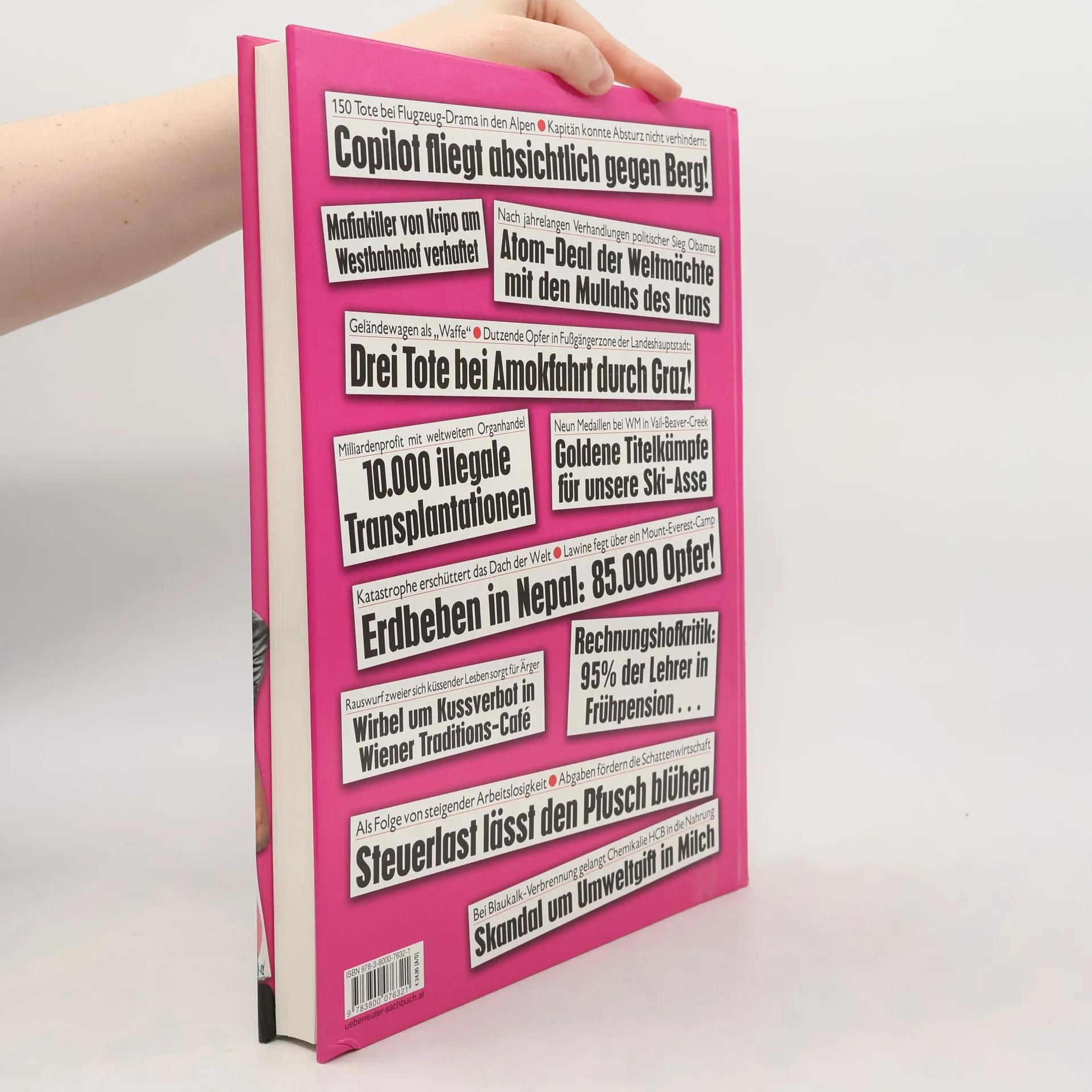 Das Blutbad in der Redaktion des Pariser Satiremagazins „Charlie Hebdo“ überschattet den Jahresbeginn. Damit hat der Islamistenkrieg, mit dem die Kämpfer des Kalifats den Nahen Osten terrorisieren, auch Europa erreicht. Dann ein Wirtschaftsschock: Die neu gewählte griechische Regierung fordert den Schuldenerlass von der EU. Erfreuliche Sporterfolge: Die Triumphe von Marcel Hirscher und Anna Fenninger beim rot-weiß-roten Medaillenregen bei der WM im amerikanischen Vail und im Weltcup. In Österreich wiederum sorgen vier Landtagswahlen – von der Steiermark bis Wien – für politische Spannung. Und mit dem Eurovision Song Contest steht Wien im internationalen Rampenlicht. Die „Schlagzeilen 2015“ bringen die aktuellen politischen Ereignisse, alle packenden Chronikgeschichten, Sportereignisse und Adabei-Storys des Jahres – 144 Seiten Zeitgeschichte mit den besten Fotos des Jahres.