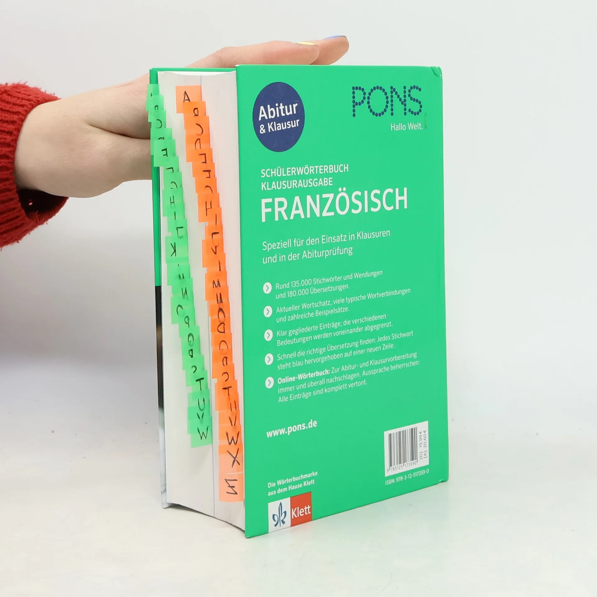 Bitte beachten Sie, dass diese Ausgabe ausschließlich an Schulen in Rheinland-Pfalz geliefert wird um Bestände der Vorgängerausgabe zu ergänzen. Privatkunden empfehlen wir die aktuellste Ausgabe des Schülerwörterbuches. Speziell für den Einsatz in Klausuren und in der Abiturprüfung Rund 135.000 Stichwörter und Wendungen und 180.000 Übersetzungen. Aktueller Wortschatz, viele typische Wortverbindungen und zahlreiche Beispielsätze. Klar gegliederte Einträge; die verschiedenen Bedeutungen werden voneinander abgegrenzt. Schnell die richtige Übersetzung finden: Jedes Stichwort steht blau hervorgehoben auf einer neuen Zeile. Online-Wörterbuch: Zur Klausurvorbereitung immer und überall nachschlagen. Aussprache beherrschen: Alle Einträge sind komplett vertont. Niveau B2-C1 (Europäischer Referenzrahmen) Für Schülerinnen und Schüler von der 5. Klasse bis zum Abitur. Speziell für Prüfungssituationen geeignet.