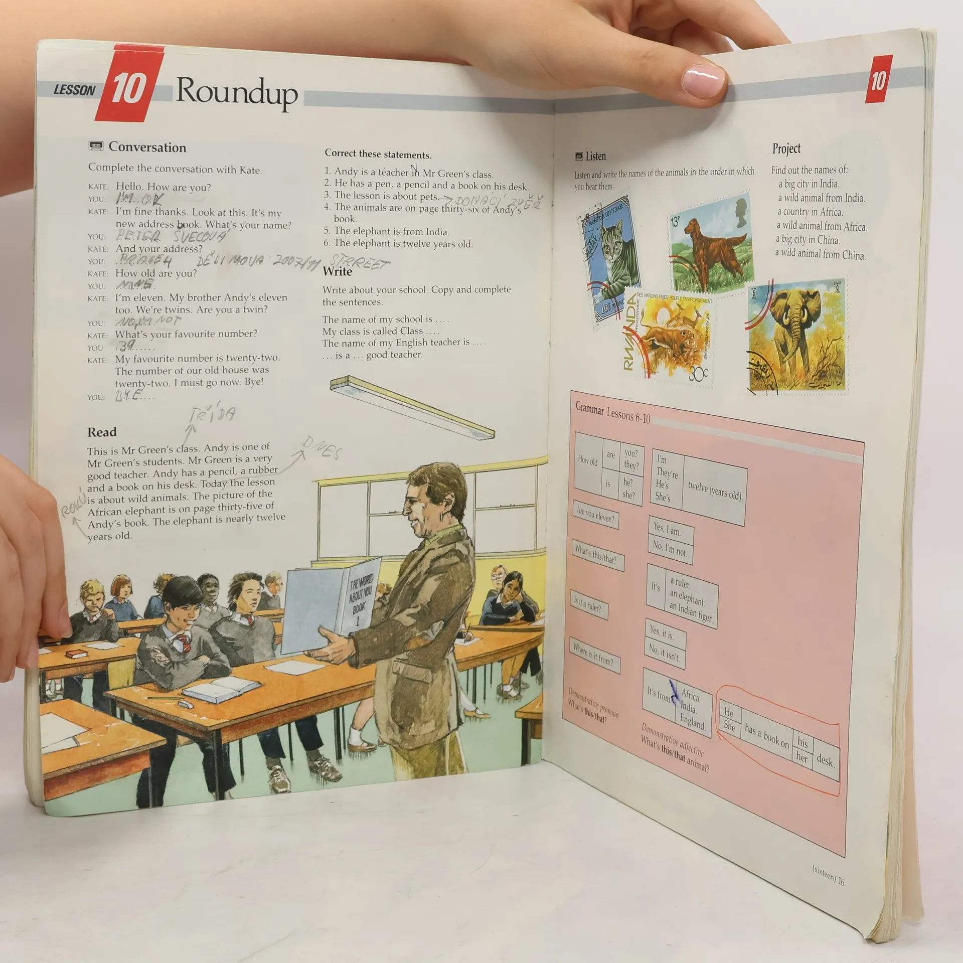 Fifty stimulating and easy to teach lessons with a clear language focus 'Round-up' lessons revise and draw together the previous four lessons with additional practice in reading, listening and writing Lessons contain dialogues and texts, pictures, language exercises, reading texts, writing tasks and listening activities 'Look!' boxes highlight points of grammar language which need special explanation 'Did you know?'/'Joke time!' small factual items and simple jokes which are linked to the lesson either thematically or linguistically Projects an occasional feature which is linked to the theme of the lesson. It aims to take students outside the textbook, to develop reference and study skills and to link English to the general curriculum Grammar summary in each Round-up lesson give an overview of the system behind the language the students have been learning Word lists active word lists for students to learn are printed lesson-by-lesson in the reference section at the end of the Students' Book