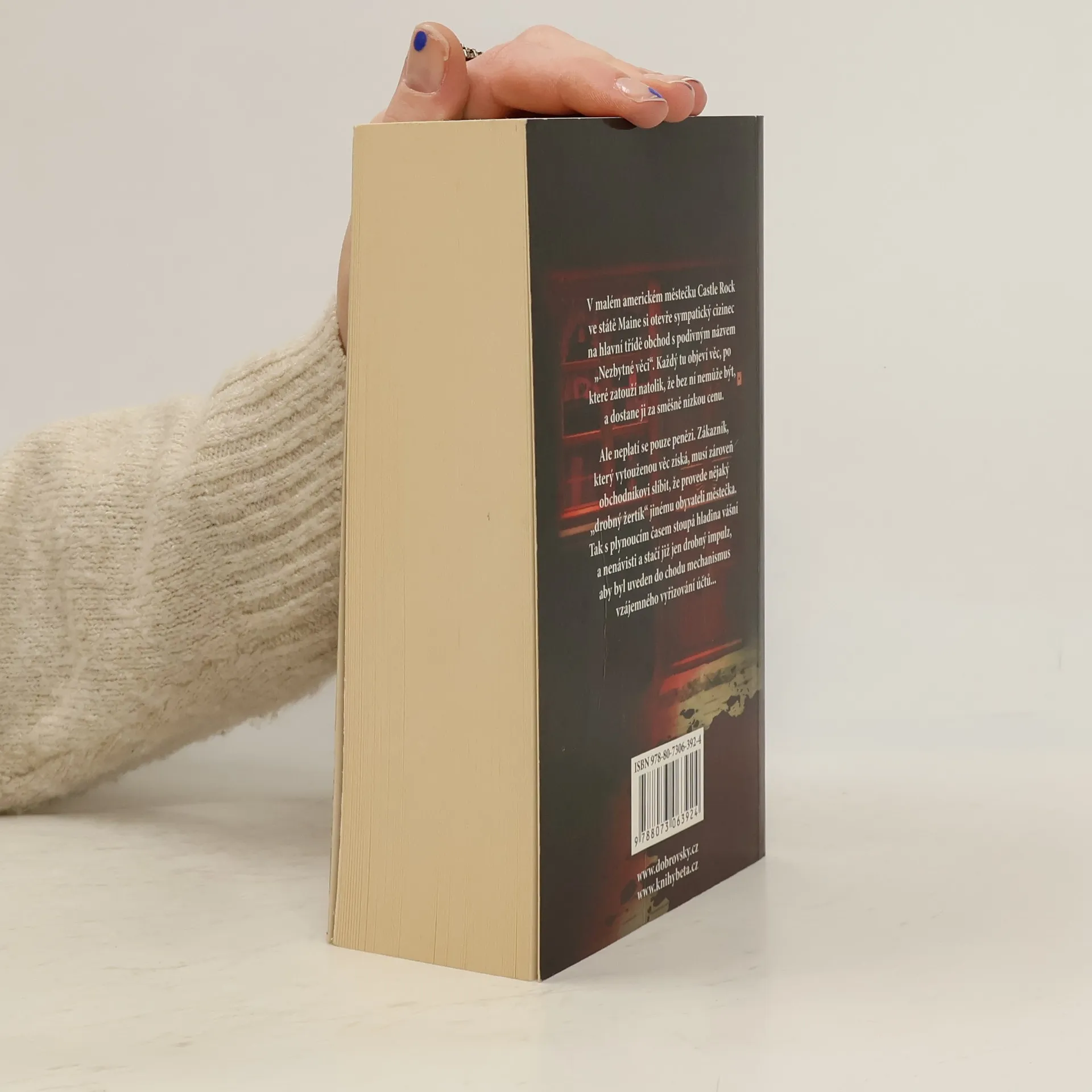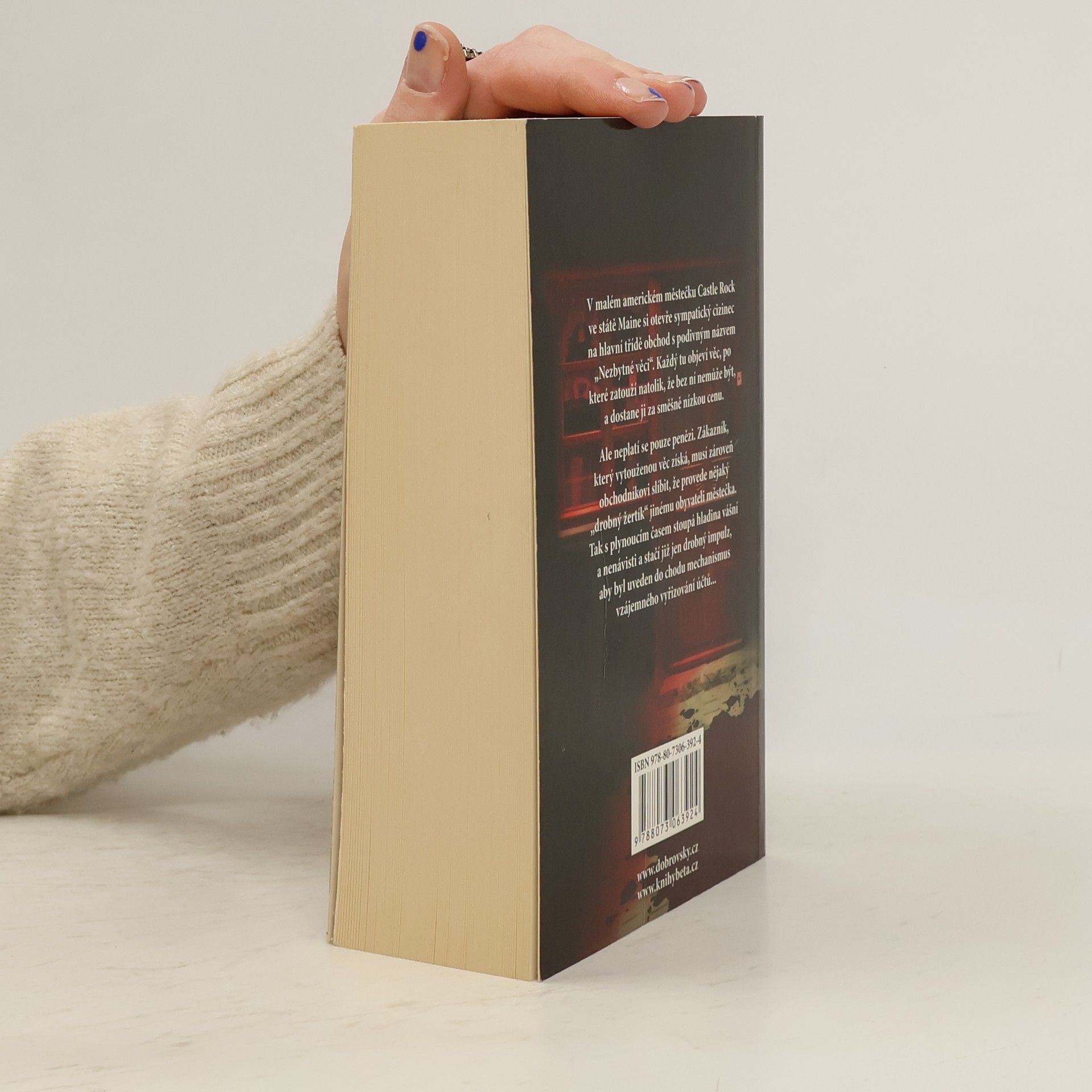 V malém americkém městečku Castle Rock ve státe Maine si otevře sympatický cizinec na hlavní třídě obchod s podivným názvem „Nezbytné věci“. Každý tu objeví věc, po které zatouží natolik, že bez ní nemůže být, a dostane ji za směšně nízkou cenu. Ale neplatí se pouze penězi. Zákazník, který vytouženou věc získá, musí zároveň obchodníkovi slíbit, že provede nějaký „drobný žertík“ jinému obyvateli městečka. Tak s plynoucím časem stoupá hladina vášní a nenávisti a stačí již jen drobný impulz, aby byl uveden do chodu mechanismus vzájemného vyřizování účtů... Dotisk roku 2014.