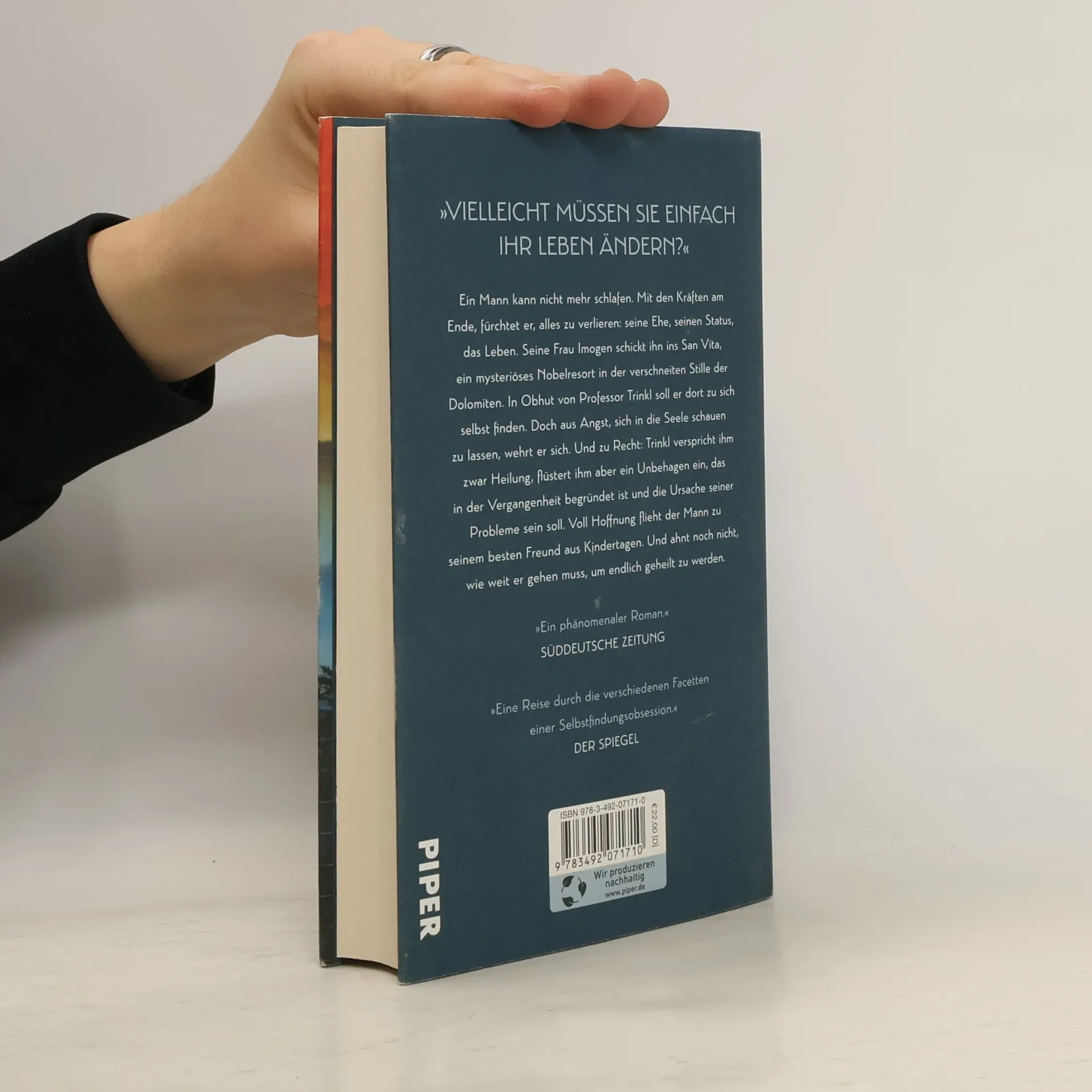 Nominiert für den Deutschen Buchpreis 2024, erzählt diese Geschichte von einem Mann, der nicht mehr schlafen kann und fürchtet, alles zu verlieren: seine Ehe, seinen Status, sein Leben. Seine Frau Imogen schickt ihn ins San Vita, ein mysteriöses Nobelresort in den Dolomiten, wo er unter der Obhut von Prof. Trinkl zu sich selbst finden soll. Doch der Mann sträubt sich, sich mit seiner Seele auseinanderzusetzen. Trinkl verspricht Heilung, bringt aber auch ein tief verwurzeltes Unbehagen ans Licht, das die Ursache seiner Probleme sein soll. Verängstigt und voller Hoffnung flieht der Mann zu seinem besten Freund aus Kindertagen und ahnt nicht, wie weit er gehen muss, um endlich von allem geheilt zu werden. Der Roman ist überraschend und entfaltet sich schlafwandelnd, aber dennoch hellwach, an der Grenze zwischen Traum und Realität. Kritiker loben ihn als die schönste Bergklinik der Literatur seit dem Zauberberg und heben die mysteriöse Schlaflosigkeit sowie die abenteuerliche Erstverschlimmerung hervor. Die Heilung beginnt bereits auf Seite 1 und der Roman wird als glänzend geschrieben, unterhaltsam und intelligent beschrieben.