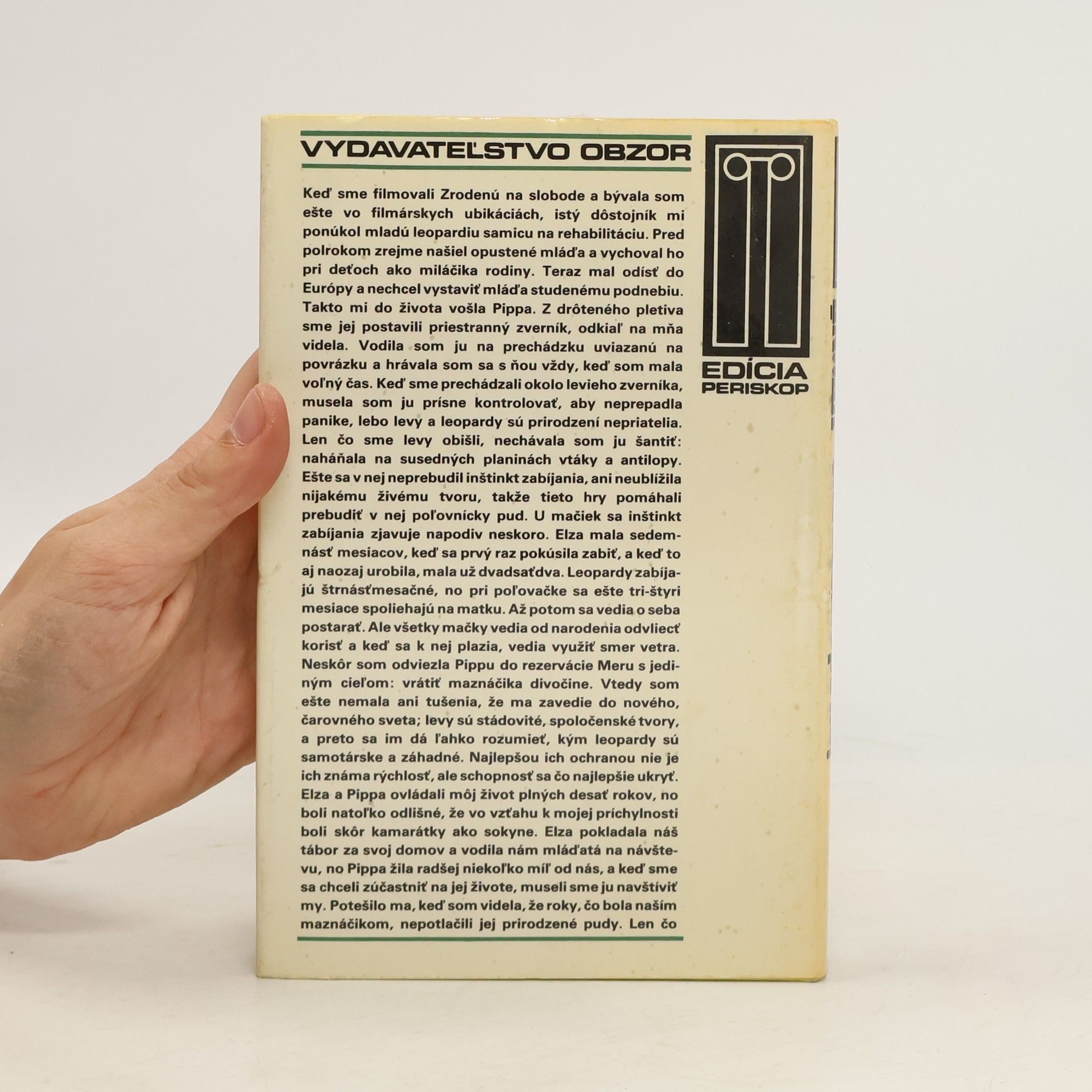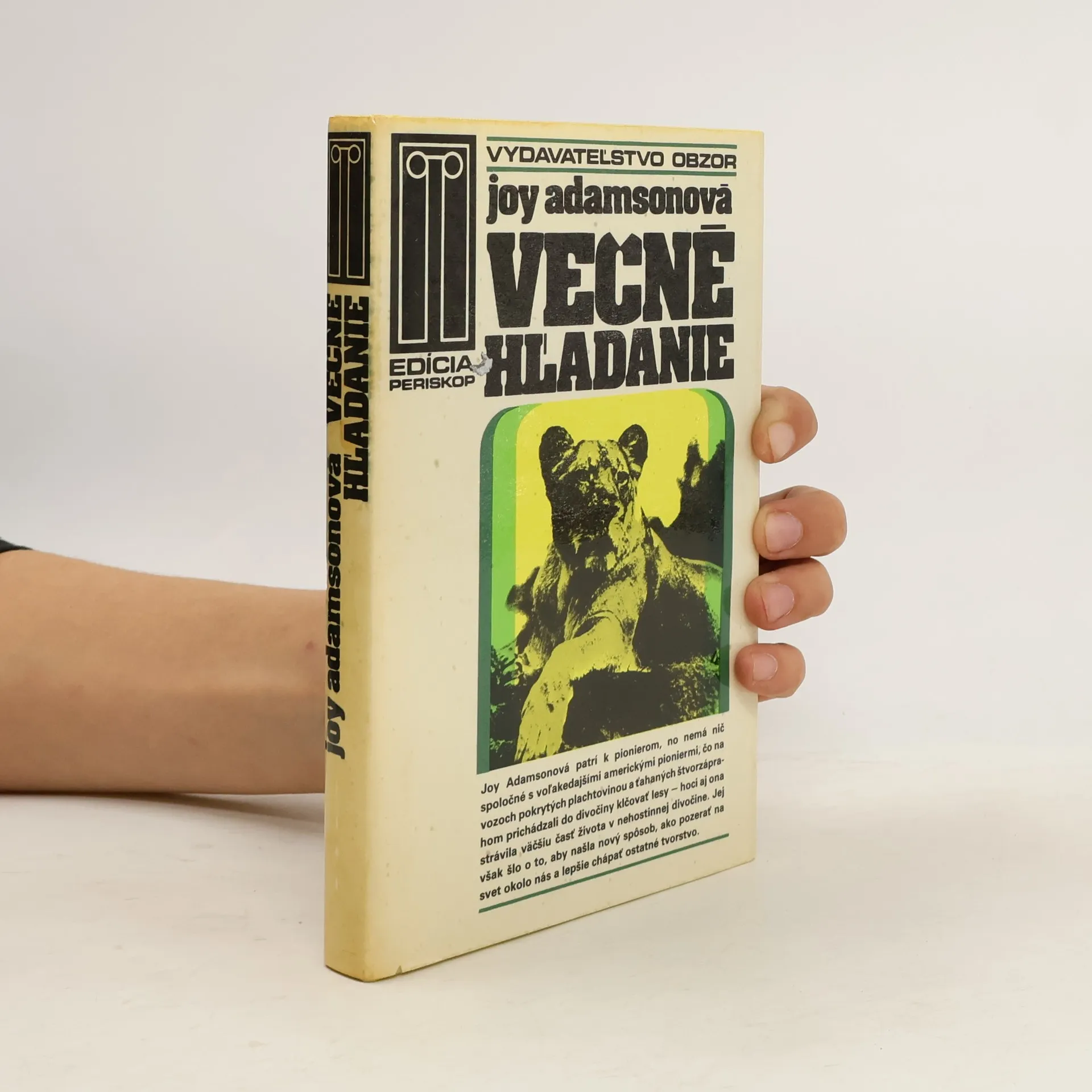 Joy Adamsonová patrí k pionierom, no nemá nič spoločné s voľakedajšími americkým pioniermi, čo na vozoch pokrytých plachtovinou a ťahaných štvorzáprahom prichádzali do divočiny klčovať lesy – hoci aj ona strávila väčšiu časť života v nehostinnej divočine. Jej však šlo o to, aby našla nový spôsob, ako pozerať na svet okolo nás a lepšie chápať ostatné tvorstvo.