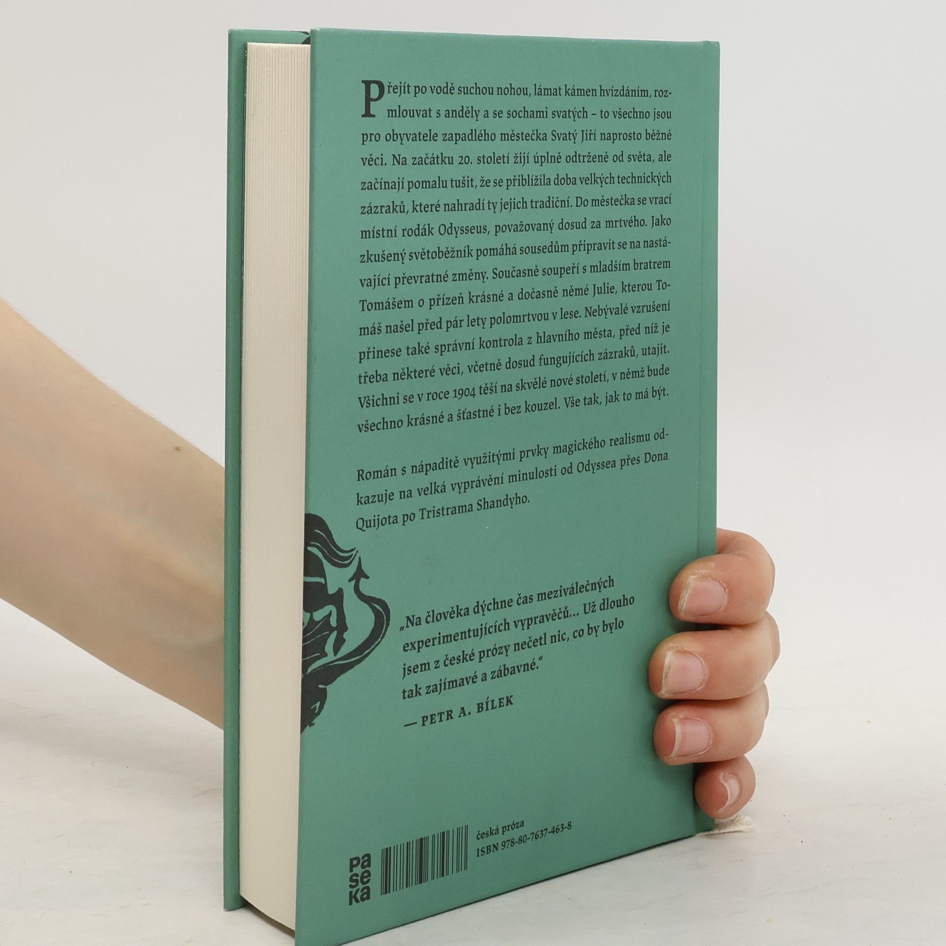 Přejít po vodě suchou nohou, lámat kámen hvízdáním, rozmlouvat s anděly a se sochami svatých – to všechno jsou pro obyvatele zapadlého městečka Svatý Jiří naprosto běžné věci. Na začátku 20. století žijí úplně odtrženě od světa, ale začínají pomalu tušit, že se přiblížila doba velkých technických zázraků, které nahradí ty jejich tradiční. Do městečka se vrací místní rodák Odysseus, považovaný dosud za mrtvého. Jako zkušený světoběžník pomáhá sousedům připravit se na nastávající převratné změny. Současně soupeří s mladším bratrem Tomášem o přízeň krásné a dočasně němé Julie, kterou Tomáš našel před pár lety polomrtvou v lese. Nebývalé vzrušení přinese také správní kontrola z hlavního města, před níž je třeba některé věci, včetně dosud fungujících zázraků, utajit. Všichni se v roce 1904 těší na skvělé nové století, v němž bude všechno krásné a šťastné i bez kouzel. Vše tak, jak to má být. Román s nápaditě využitými prvky magického realismu odkazuje na velká vyprávění minulosti od Odyssea přes Dona Quijota po Tristrama Shandyho.