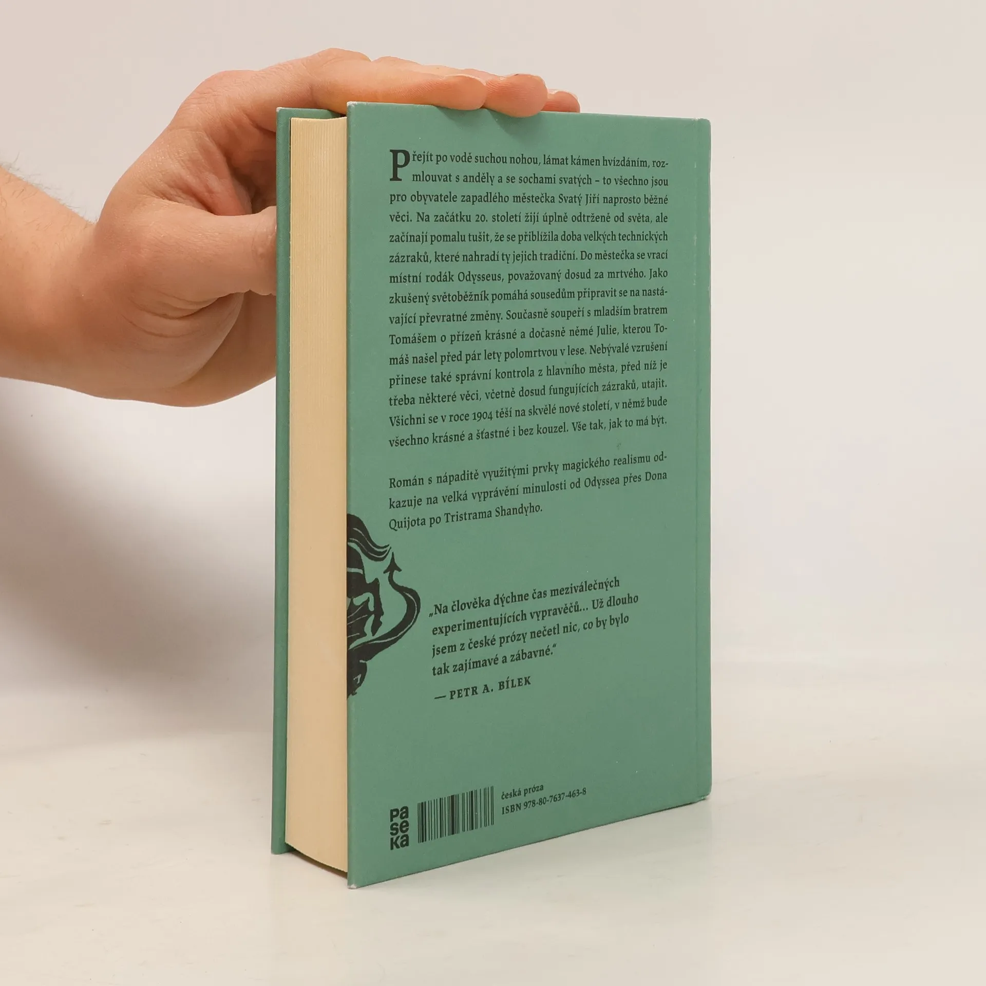 Přejít po vodě suchou nohou, lámat kámen hvízdáním, rozmlouvat s anděly a se sochami svatých – to všechno jsou pro obyvatele zapadlého městečka Svatý Jiří naprosto běžné věci. Na začátku 20. století žijí úplně odtrženě od světa, ale začínají pomalu tušit, že se přiblížila doba velkých technických zázraků, které nahradí ty jejich tradiční. Do městečka se vrací místní rodák Odysseus, považovaný dosud za mrtvého. Jako zkušený světoběžník pomáhá sousedům připravit se na nastávající převratné změny. Současně soupeří s mladším bratrem Tomášem o přízeň krásné a dočasně němé Julie, kterou Tomáš našel před pár lety polomrtvou v lese. Nebývalé vzrušení přinese také správní kontrola z hlavního města, před níž je třeba některé věci, včetně dosud fungujících zázraků, utajit. Všichni se v roce 1904 těší na skvělé nové století, v němž bude všechno krásné a šťastné i bez kouzel. Vše tak, jak to má být. Román s nápaditě využitými prvky magického realismu odkazuje na velká vyprávění minulosti od Odyssea přes Dona Quijota po Tristrama Shandyho.