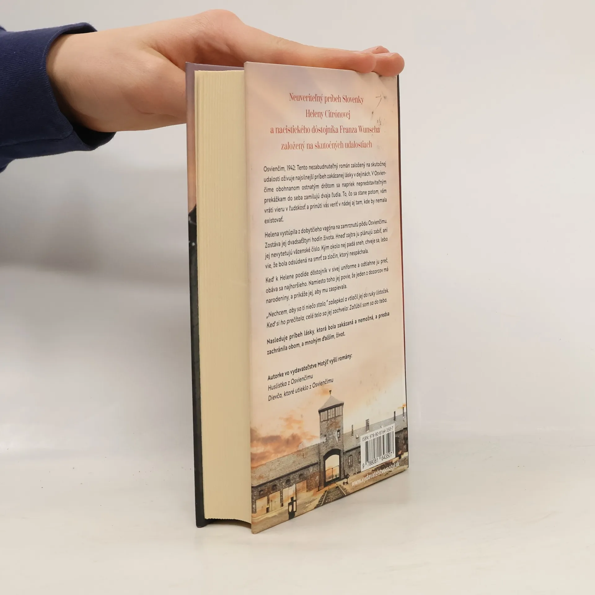 Neuveriteľný príbeh Slovenky Heleny Citrónovej a nacistického dôstojníka Franza Wunsche založený na skutočných udalostiach Osvienčim, 1942: Tento nezabudnuteľný román založený na skutočnej udalosti oživuje najsilnejší príbeh zakázanej lásky v dejinách. V Osvienčime obohnanom ostnatým drôtom sa napriek nepredstaviteľným prekážkam do seba zamilujú dvaja ľudia. To, čo sa stane potom, vám vráti vieru v ľudskosť a prinúti vás veriť v nádej aj tam, kde by nemala existovať. Helena vystúpila z dobytčieho vagóna na zamrznutú pôdu Osvienčimu. Zostáva jej dvadsaťštyri hodín života. Hneď zajtra ju plánujú zabiť, ani jej nevytetujú väzenské číslo. Kým okolo nej padá sneh, chveje sa, lebo vie, že bola odsúdená na smrť za zločin, ktorý nespáchala. Keď k Helene podíde dôstojník v sivej uniforme a odtiahne ju preč, obáva sa najhoršieho. Namiesto toho jej povie, že jeden z dozorcov má narodeniny, a prikáže jej, aby mu zaspievala. „Nechcem, aby sa ti niečo stalo,“ zašepkal a vtlačil jej do ruky lístoček. Keď si ho prečítala, celé telo sa jej zachvelo: Zaľúbil som sa do teba. Nasleduje príbeh lásky, ktorá bola zakázaná a nemožná, a predsa zachránila obom, a mnohým ďalších, život.