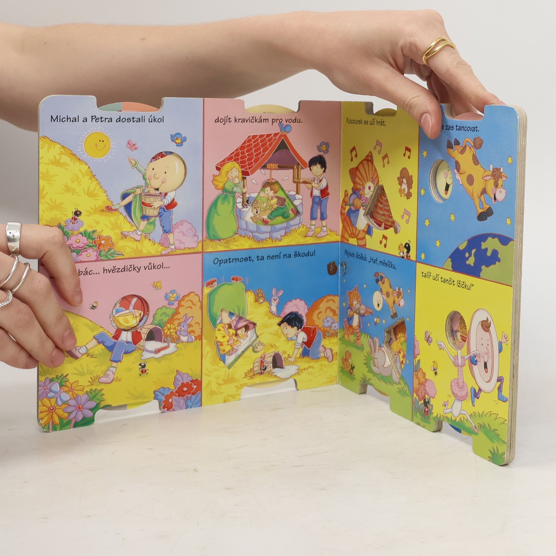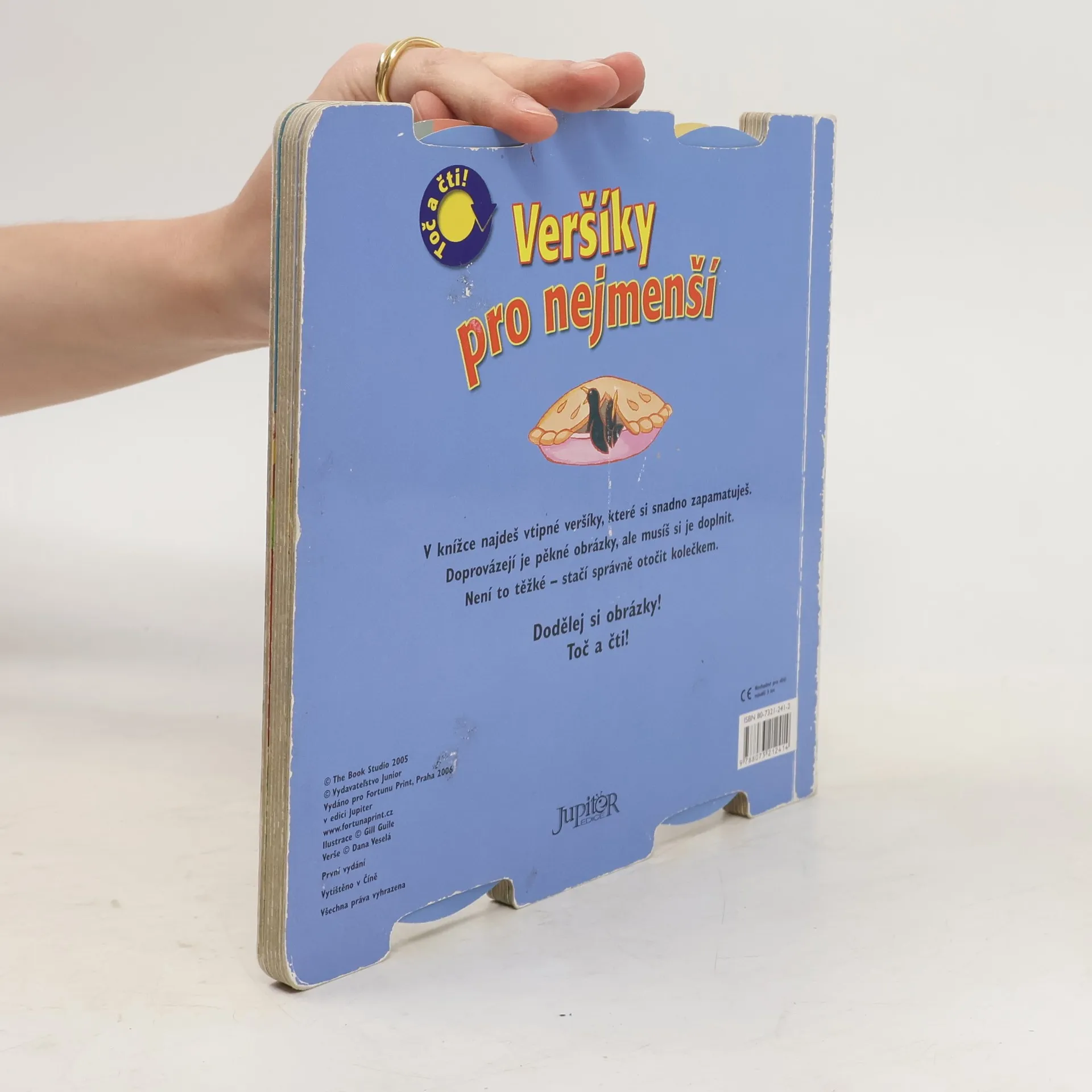 Dodělej si obrázky! Toč a čti! V knížce najdeš vtipné veršíky, které si snadno zapamatuješ. Doprovázejí je pěkné obrázky, ale musíš si je doplnit. Není to těžké - stačí správně otočit kolečkem.